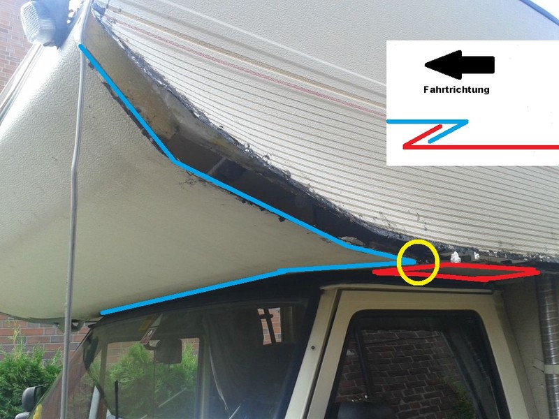 Tag Ist doch ganz einfach, da ja unter der Leiste kein Gummi sondern nur Dekalin ist. Diese Kantenleisten sind werkseitig immer in Längen von 5 oder 6 m montiert. Hier fangen die garantiert vorne unten am Alkoven an und biegen die da rum und dann nach hinten. Es sollte also kurz hinter dem Alkoven ein Stoß sein. Bis dahin machst sie ab. Kurt