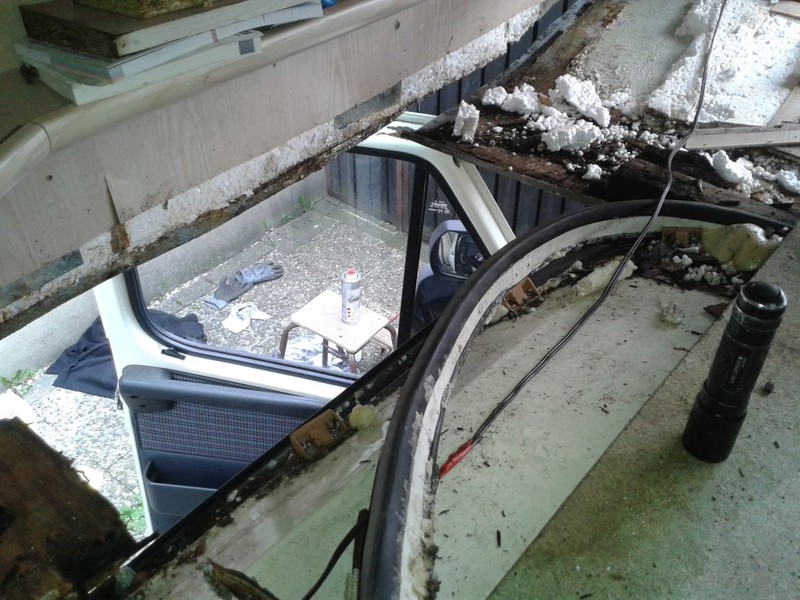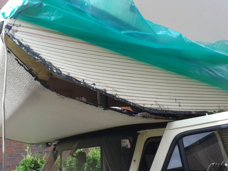 Auf dem folgenden Bild sieht man Teile des neuen Dachrahmens. Die Montage stelle ich mir noch recht komplex vor, da man beim Einpassen auf so viel achten muss. Die Gummidichtung soll richtig sitzen, die Dichtmasse muss überall hin, die Leisten müssen stimmen etc... Aber mal sehen, wie es wird.