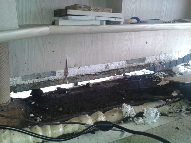 Die Kantenleiste war undicht. Nun hast Du sie ja offen ... morsches entfernen, ersetzen, eindichten ... nach Alufraß schauen!