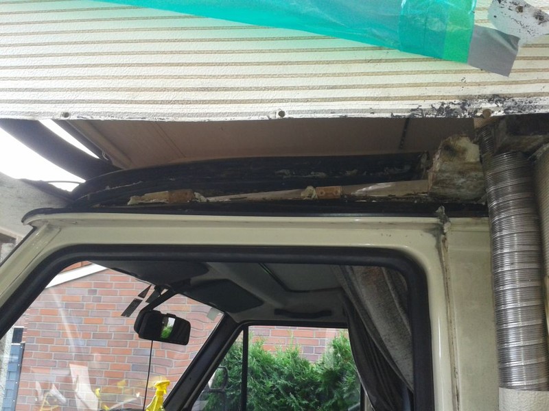 Meine erste Frage wäre aber: Wo kommt das Wasser her??? Alles, was auf der linken Seite entfernt ist, war nass. Noch ist ja auch nicht alles weg. Ich hatte vorher gedacht, Das Wasser kommt von der Alkovenaussenleuchte oder vom Bugfenster....aber in die Richtung ist alles trocken. Wo kommt es dann her?