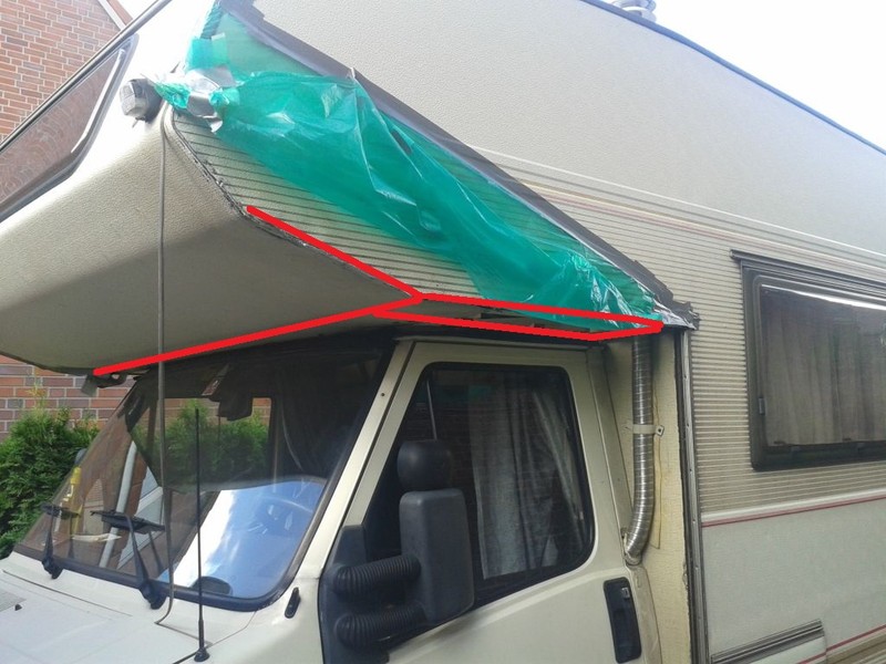 Tag Fabian Nimm blos keine Plastikplatte oder sonst welche Experimente. Auch spachteln würde ich nicht, sieht immer sch..... aus. Besorg Dir ein neues Blech und verklebe Blech mit neuem Holzrahmen, neuer Iso und Dekorplatten. Nur so, also Sandwich wie im Original, hat der Alkoven wieder genügend Stabilität. Kurt