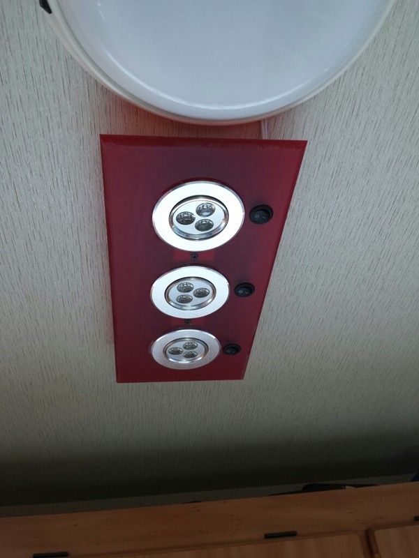 Ich mach dir nachher ein Bild wie ich das gelöst habe. Einfach eine Acryl-Abfallplatte mit der Oberfräse gefast und mit dem Fräszirkel den Ausschnitt ausgefräst. Link zum eBay Artikel Christian Moin Hier die Bilder: ![]() ![]() Zum Lernen/Lesen/Schreiben reicht es locker wenn nur eine Leuchte an ist, bei allen 3 ist Taghell im Womo. Als Abstandhalter habe ich einfach zwei Dachlattenstücke senkrecht mit einer schwarzen Rigipsschraube an´s Acryl geschraubt (Das Holz sieht man leicht durch) und obendrüber eine Dachlatte auf 1cm dicke runtergesägt und diese Platte dann mit der Decke verschraubt. Christian Hallole, Xiero999, guck mal hier nach --> Link und telefonier mit Andre oder schick ne Mail zu ihm. Du erhältst kompetente Beratung und wenn du was bestellst, geprüfte Lichtlein und keinen Kram. Eine gute Beleuchtung wünscht Stegi Hallo danke. ich bin eigentlich mit meinen LED`s zufrieden. Hatte sie jetzt schon einige Stunden durchgehend an und kann nichts reklamieren. Und bei dem Preis kann ich mir noch paar Austausche leisten. Ich habe die MR11 drinn und im Bad und Küchenzeile G4 Sockel, aber den, wo man die Birne mit den Stiften so seitlich reinsteckt wegen fehlender Tiefe im Dachbereich. Die Platine hat glaub ich 12 LED Punkte und eine runde Form... hallo christianka6cr, tolle Lösung Andreas