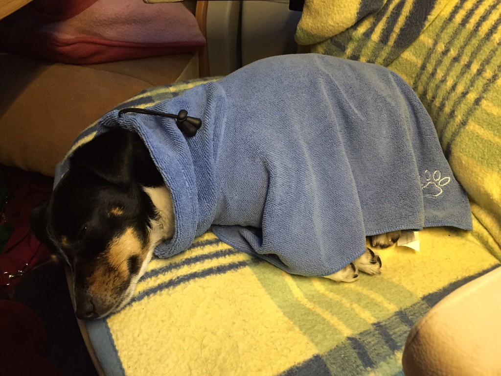 Wie ist das denn mit der Decke, wenn der Hund dann trocken ist? Ich nehme am liebsten ein sogenannten Drybed - die saugen auch die Nässe auf und es trocknet hinterher schnell ab.
