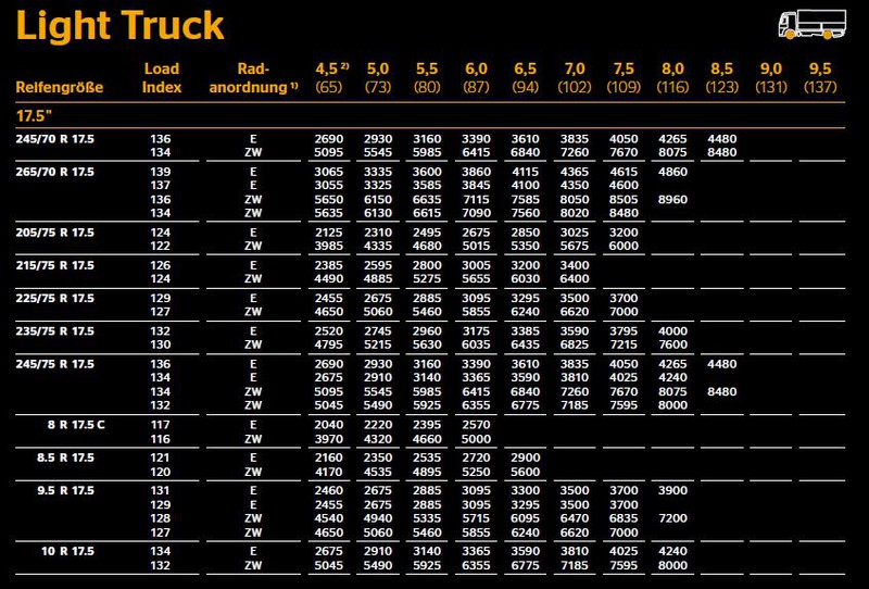 Wir fahren eine 4,5 Tonner mit Michelin 225/75R16CP116Q Reifen.