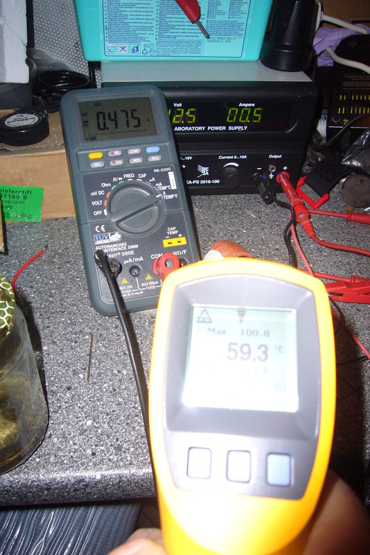 Hy, ich lasse mal eine auf 12,5 V laufen & schaue was sie zieht und vor allem, welche Temp. sie erreicht.