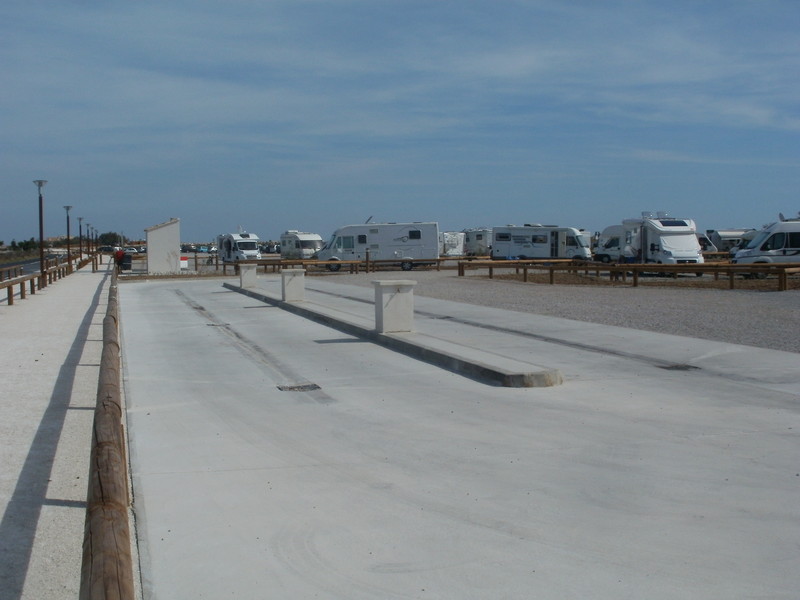 Neuer , grosser Wohnmobilstellplatz mit 3 x V/E am westlichen Strand von Saintes-Maries-de-la-Mer . Liegt zwischen Strasse zum Campingplatz (acsi) Clos du Rhone und Strand . Eben , geschottert und schattenlose Plätze. kein Strom ! Nach Grösse der Womos gestaffelt : 10 € bis 7,5 m , 20 € (!) für Grössere . Vom Ort aus kommt erst der Tageswohnmobilstellplatz : --> Link und dann dieser SP , dann Pferdefarm , CP und kleine Rhonemündung. ![]() Info und Bilder September 2013. 3 x V/E (oder sogar 6x , sehe ich grad auf den Bildern.... ![]() SP: ![]() Blick vom Damm : ![]() Mit Tagesplatz gemeinsame Brücke zum Strand , Blick zum Ort : ![]() Blick nach Westen : ![]() Waren gerade vor Ort. Achtung geschlossen im Winter. Öffnungszeiten vom März bis November. hallo; isch war im september dort; ein schotteracker ohne wind und sonnenschutz frischwasser gabs nur von 10 bis 12 uhr. mit der entsorgung hatten einige probleme; sie wollten den inhalt ihrer casette durch das ablaufgitter drücken obwohl daneben ausgußstellen sind. ich bin dann 200 meter weiter für 12 euro auf den CP mit strom wasser abwasser und dusche!! mfg KH |