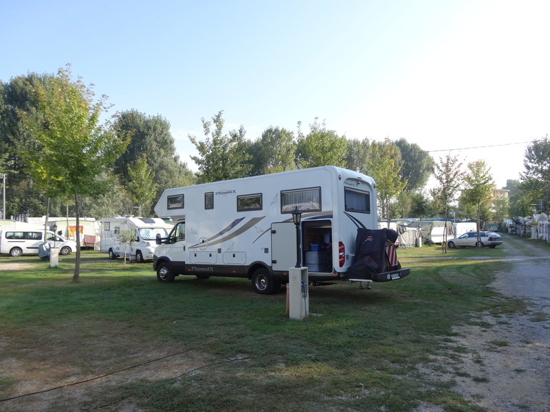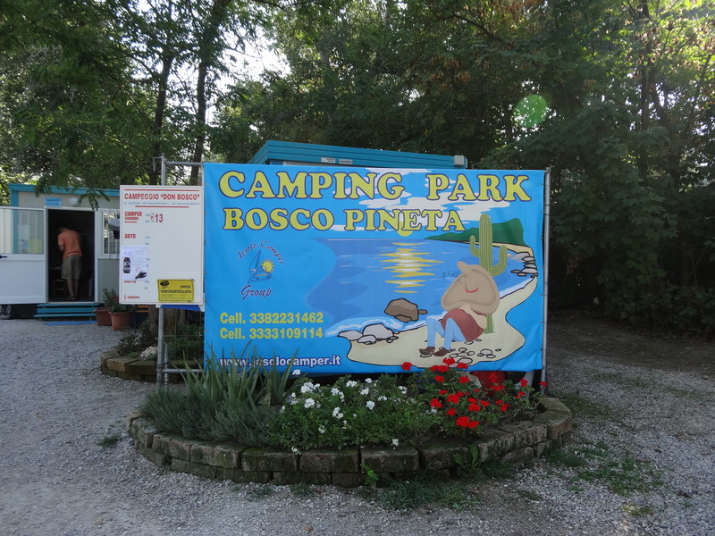 Erste Übernachtung in Area Camper Don Posco in Jesolo, 10.60 inkl. Kurtaxe ohne Strom, Strand fussläufig, Sanitär kann ich leider nichts sagen hab ich nicht benützt, nette Leute am Empfang