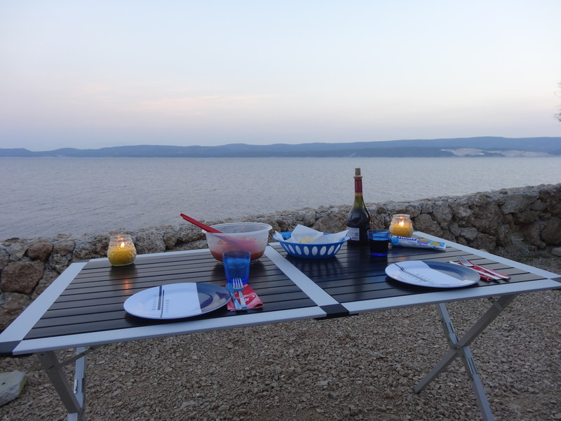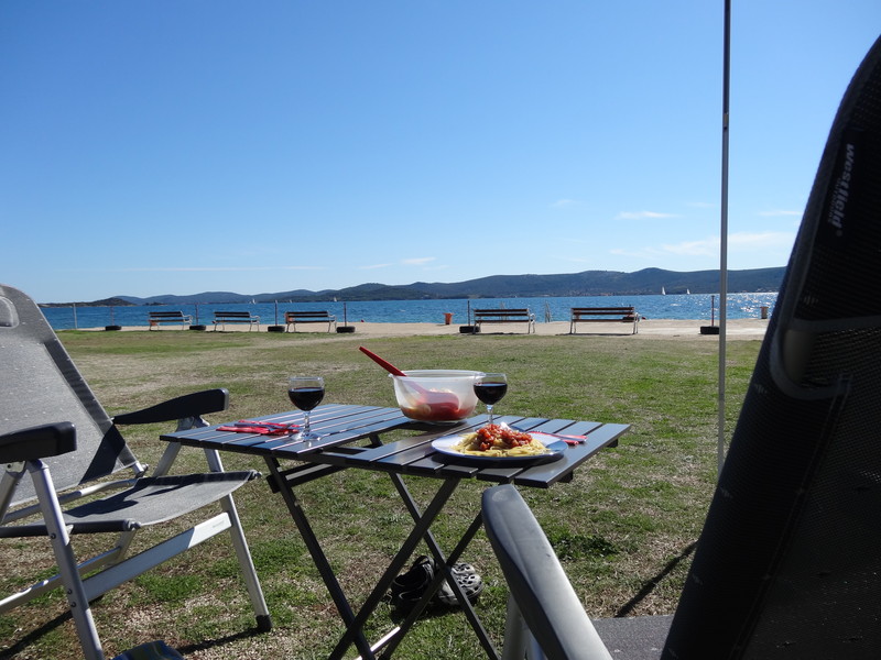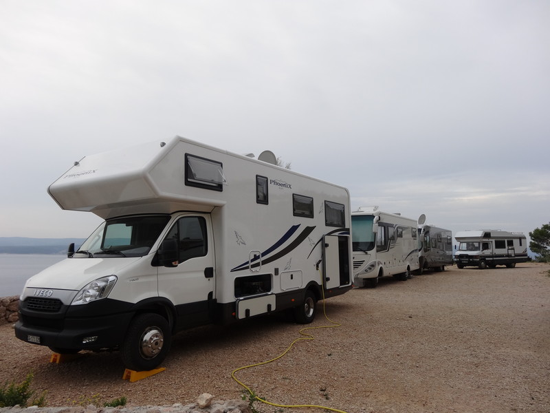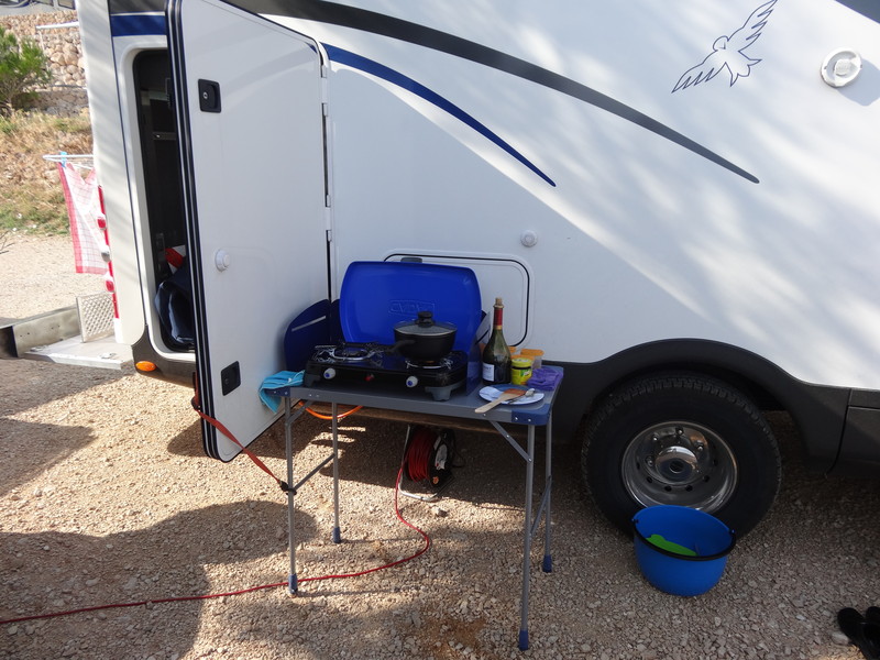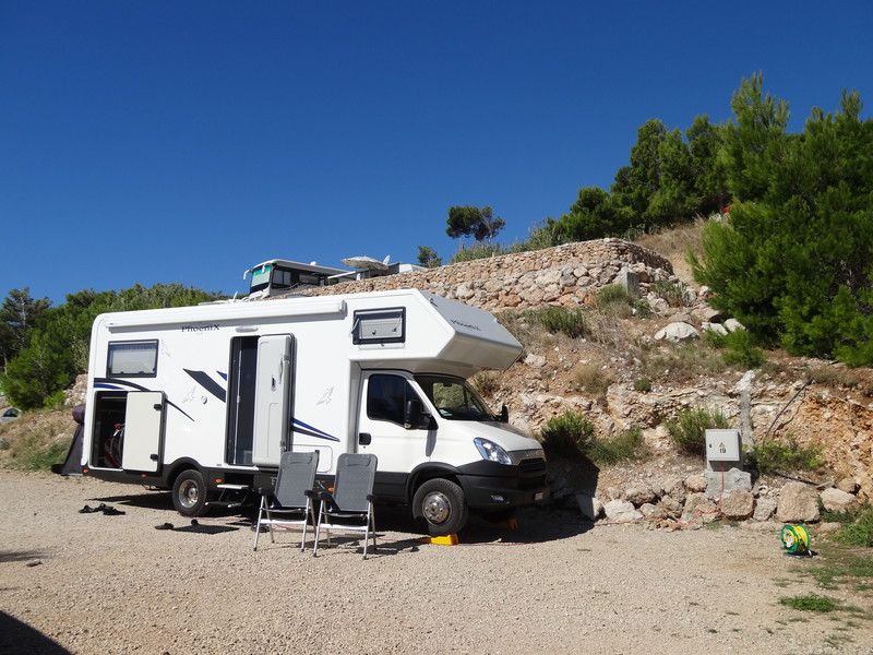 Stehen noch zwei Mobile da und sonst niemand, nette Vermieterin und toller Platz mit direktem Meerzugang, Preis alles inkl. 120 Kuna pro Nacht, für die Entleerung der Kassette ist gesorgt, Abwasser muss man mit dem Kübel entleeren und Frischwasser kann man mit dem Schlauch tanken :ja: .