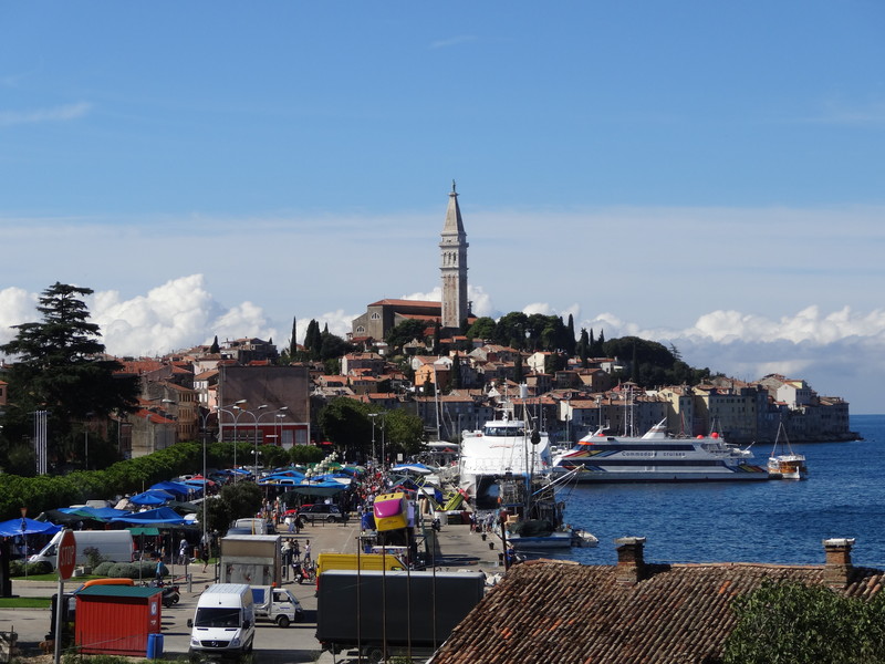 So wir sind in Rovinj gelandet und finden sogar mit unserem einen Parkplatz, also ein über 8 Meter Mobil kann auch auf einem ganz normal PKW Platz parken :D .
