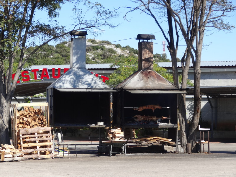 Unterwegs immer wieder grosse Holzkohlegrills mit Ferkeln dran :eek: .