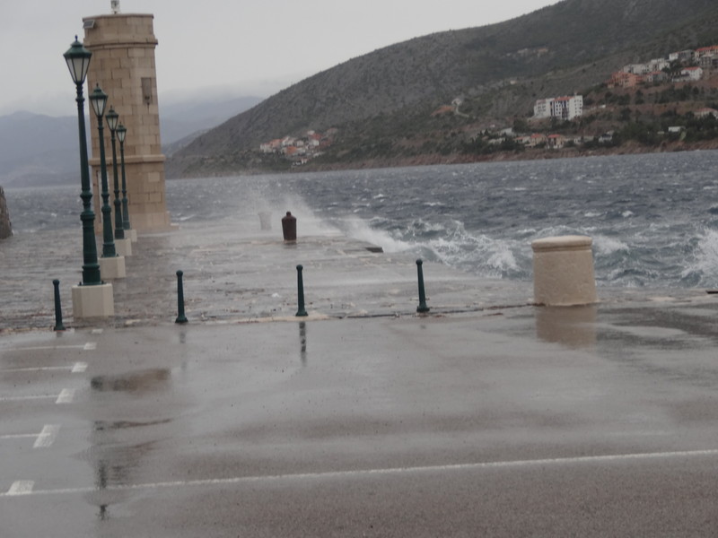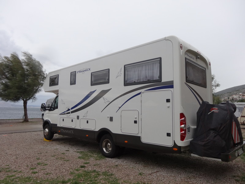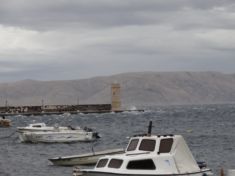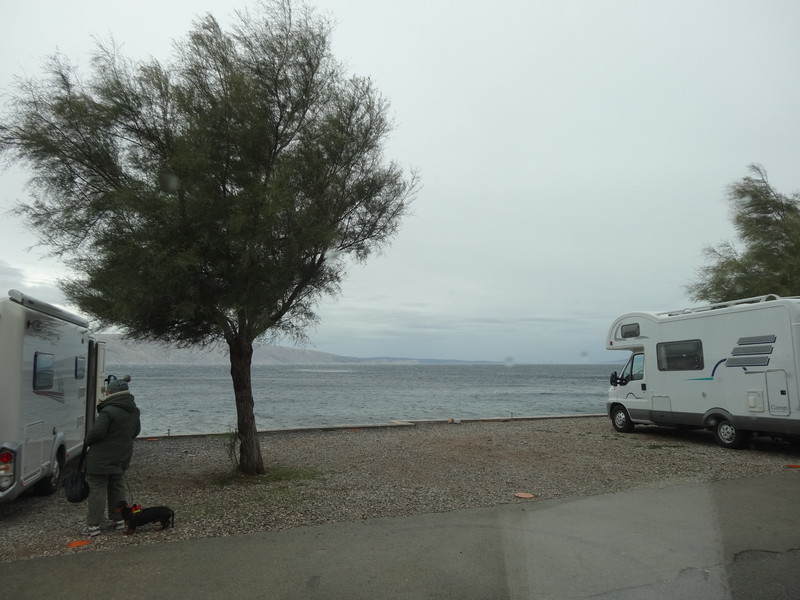 Nach einer stürmischen Nacht wo ich so gegen 2.00 Uhr die Stühle noch verräumt habe, planen wir die Weiterfahrt Richtung Rijeka.