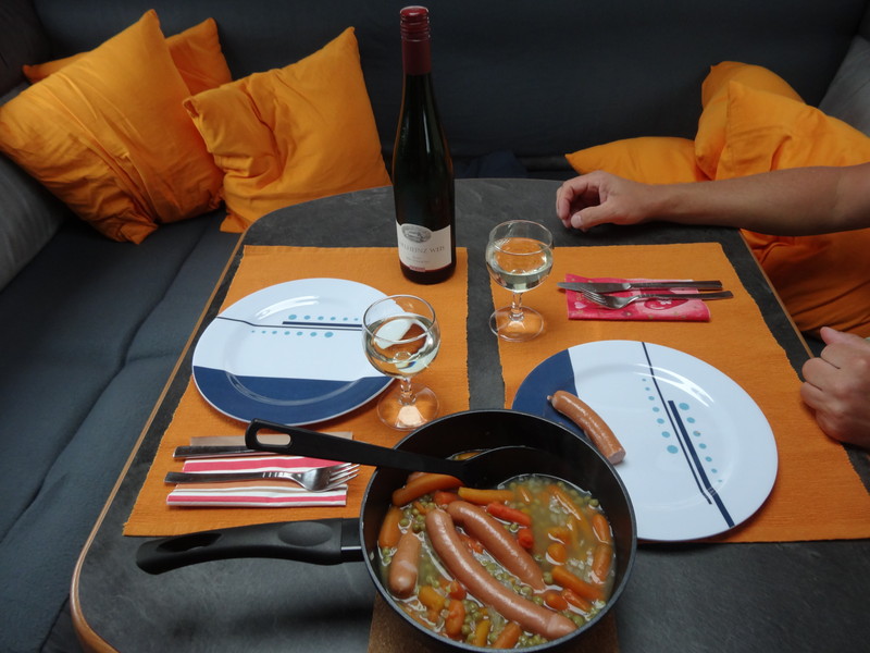 Nachdem wir einen kleinen Imbiss und ein Fläschchen Rotwein hatten fing es doch tatsächlich wieder an zu regnen :?