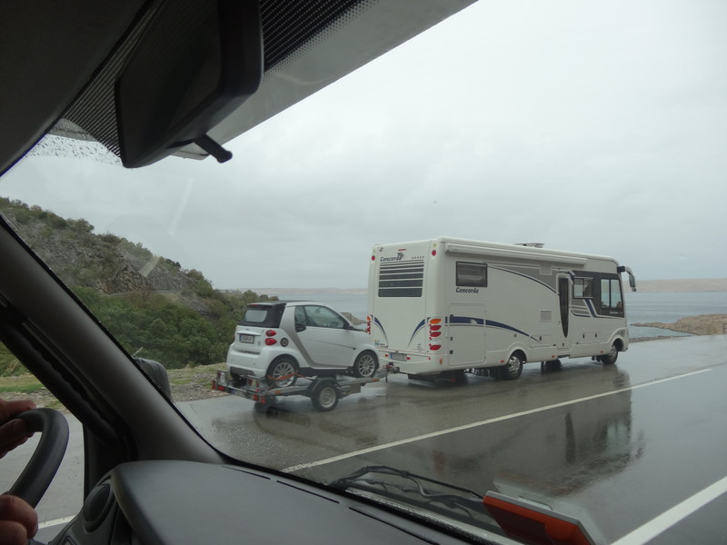 Nach einer ruhigen Nacht gings dann wieder auf Achse Richtung Triest über die Grenze von Slowenien und dann Grenzstation Kroatien, beide Zollämter wurden ohne grosses Interesse der Zöllner durchfahren. So das Navi weisst uns ja den Weg, also kein Problem - bis zu der Tafel - sch.....