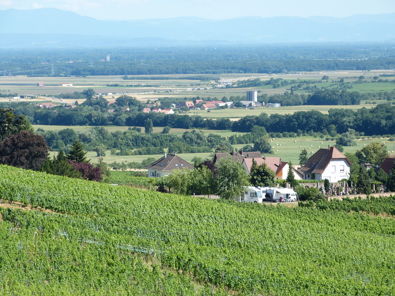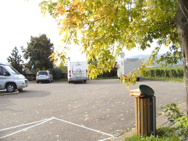 Wir hatten kürzlich eine kleine Herbst-Elsass-Tour gemacht. In der Stellplatzkarte hatten wir den Hinweis auf den Stellplatz in Gertwiller beim SuperU genutzt und hier unser Abendessen gekauft, aber zum Übernachten hat es uns nicht gefallen. Lieber irgendwo im Wald als auf dem Supermarktparkplatz. Da wir am nächsten Tag zum Mont Sainte Odile wollten, sind wir in diese Richtung weiter gefahren und haben diesen kleinen Platz 1,5 km hinter Barr gefunden. Es ist der Friedhofsparkplatz und hat Platz für 4-5 Womos. Ist nicht ausgeschildert und ohne jeden Luxus, aber ein ruhiger Schlafplatz. Wird auch als Wanderparkplatz genutzt. Zum Mont Saint Odile sind es ca. 12 km, nach Hte Königsbourg ca. 31 km. An der Zufahrtsrampe zum Friedhof ist ein Wasserkran. Man könnte also auch Brauchwasser im Kanister nachfüllen. Die Pizzakartons auf dem Müll sind von ein paar jungen Leuten, die gestern Abend sich hier getroffen haben. Sie haben im Auto bis um 22.ooh Musik gehört und dann fein wieder aufgeräumt. Man konnte sich wirklich nicht beschweren. ![]() Eine andere Perspektive ![]() Das kleine Sträßchen führt durch die Weinberge in den Ort. Und die Aussicht ist wunderschön ![]() Der Friedhofsparkplatz ist im SP Führer des Elsässichen Tourismusbüros offiziell als SP gelistet. Der Weinberg Zotzenberg gegenüber des SP ist eine Grand Cru Lage für Silvaner. Am SP startet auch der Weinlehrpfad und man kann wundervoll hoch zur Burg Andlau wandern. Mittelbergheim zählt zu den 100 schönsten Dörfern Frankreichs. ![]() ![]() Frank |