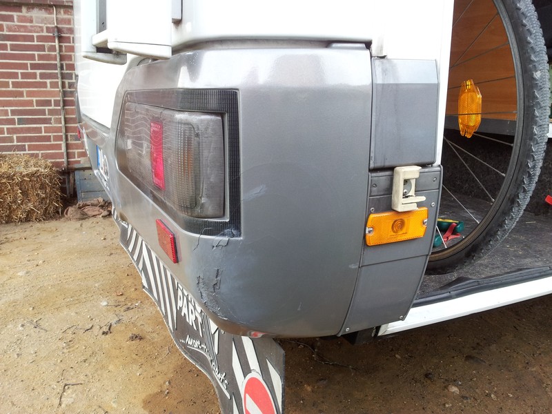 - von vorne Polyesterspachtel in die Schlitze und schleifen und lackieren (lassen)
