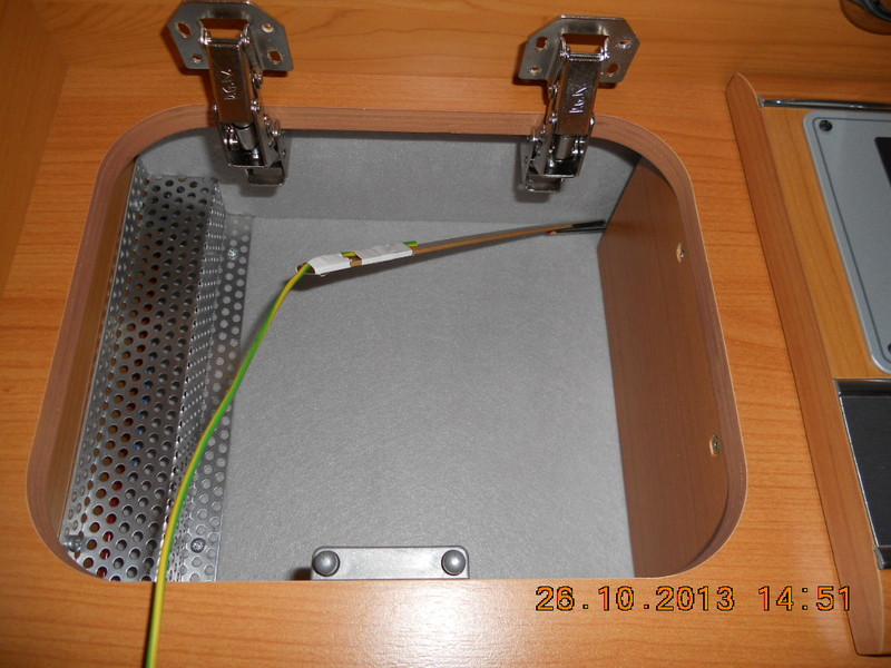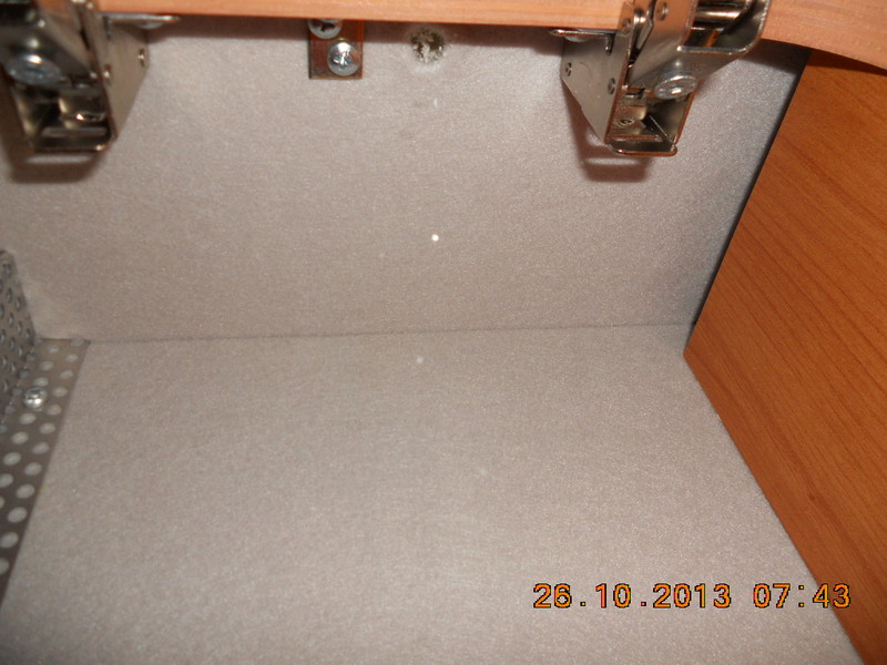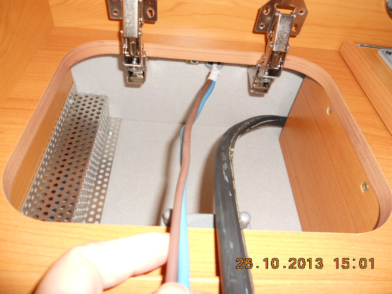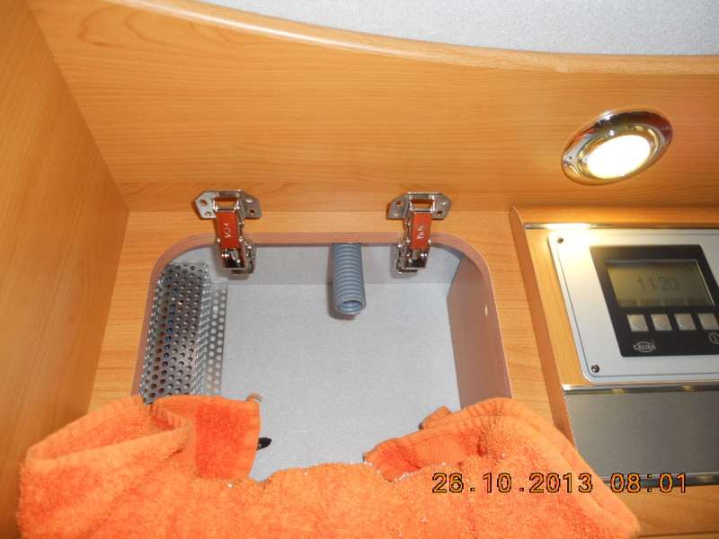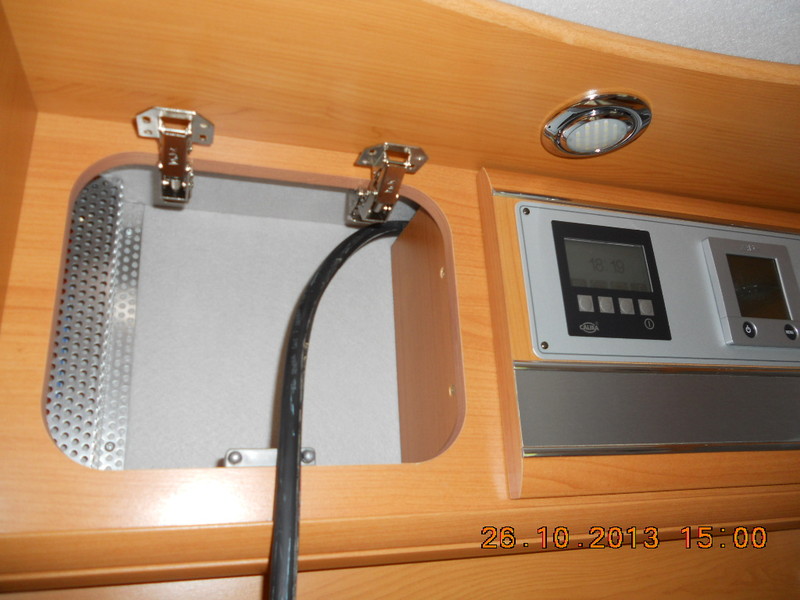 Wir haben uns für das kleine Oberschränkchen neben den Bedienteilen entschieden, weil man da eh nix gescheites reinbringt und da stört das Kabel auch nicht.