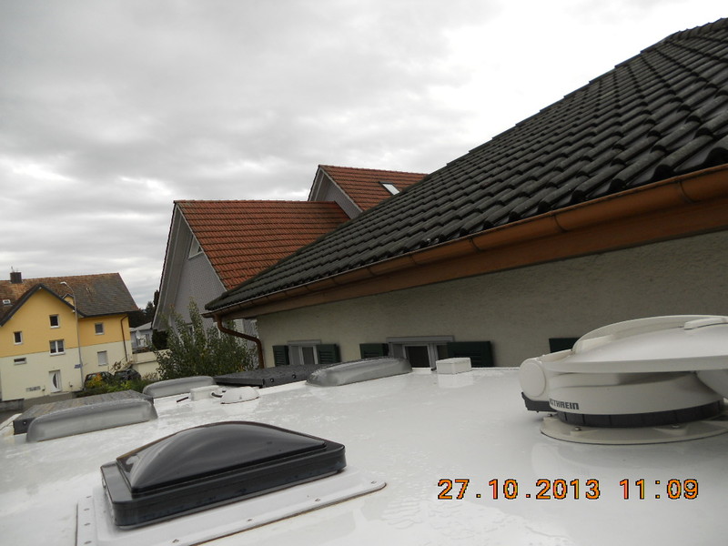 Der Wetterbericht hatte für heute Sonntag noch gutes Wetter angesagt, aber man darf nicht alles glauben was erzählt wird :evil: , es regnete in Strömen mit kurzen Unterbrechungen und es war auf dem Dach doch noch nicht alles fertig :cry: .