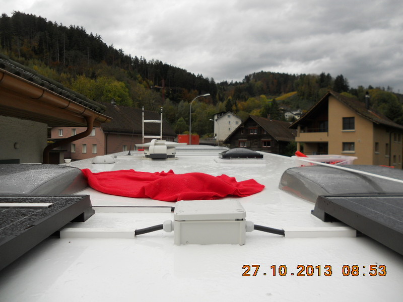 Ja die Unterbrechungen nutzten wir noch um auf dem Dach klar Schiff zu machen, Kabel noch in den Kanal verräumen, Kabel noch anschliessen und dann hoffen wir das Beste :ja: .