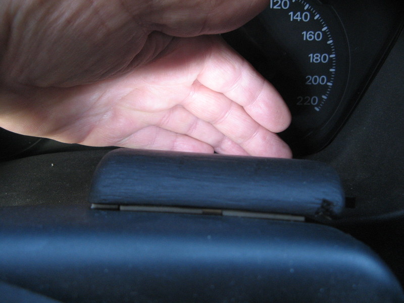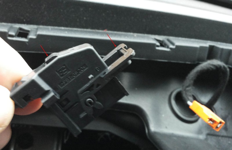 - Deckel des oberen Staufachs abbauen, 2 Schrauben hinten am Scharnier
