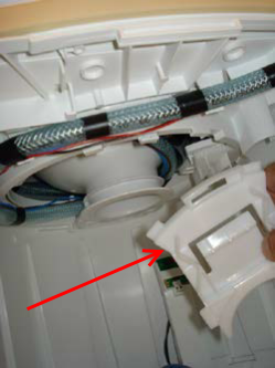 Oben siehst du diesen länglichen, kleinen Schlitz. Dort ist eine kleine Rastnase, welche man leicht nach oben drücken mus. Dann ein Stück drehen, am besten mit Handschuh. Ist es lose,kann man es nach unten herausnehmen.