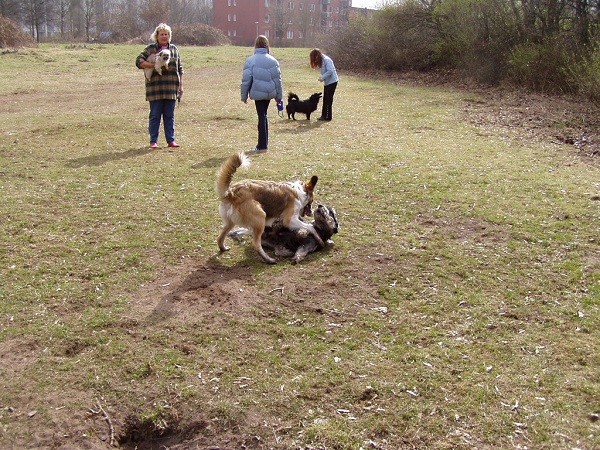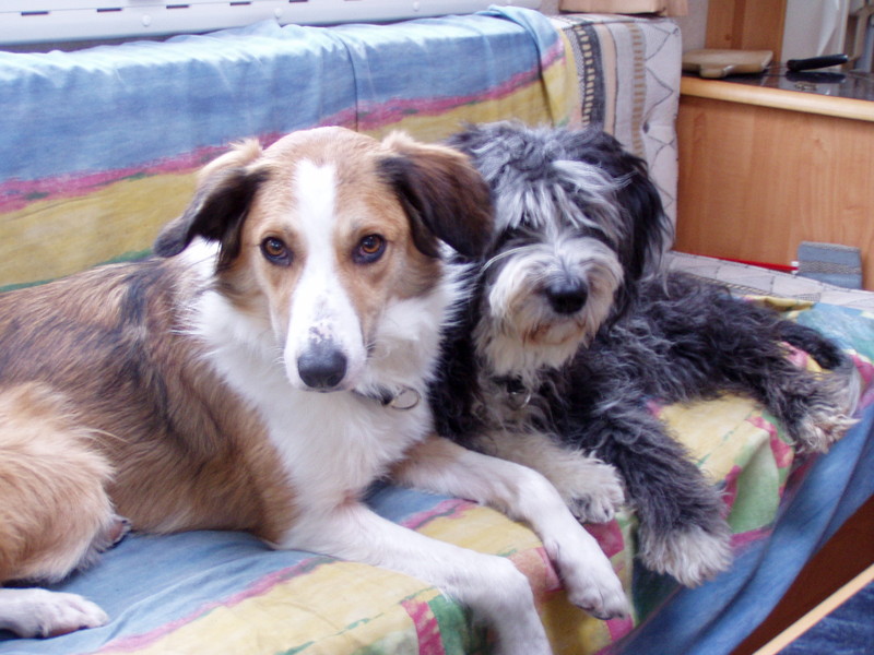 Im Womo ist der Raum eng wenn sich zwei nicht so verstehen. Ist ja nicht so, das Willy ein beißer ist, er verträgt sich schon mit anderen Hunden, wie man auf den Fotos sieht, ![]() Mit dieser weißen Holländerin, hatte er großen Spaß ![]() sogar mit dieser Bärenmutter hat er sich vertragen, sie dreht sich sogar weg. ![]() Naja, so eine Bärenmutter weiß halt auch zu was so ein furchteinflössender Terrier im Stande ist!!! :lach: :lach: Ich kenne Hunde die superverträglich mit Artgenossen sind aber ein dauerhafter Partner an der Seite mit dem man plötzlich alles teilen muss was einem vorher allein gehörte, ist eben nochmals eine andere Hausnummer! :wink: Und wie tliner schon schrieb: im Womo ist dann doch alles auf sehr engem Raum! Einen Hund aus dem Ausland "bestellen" und mal versuchen ob es klappt, halte ich für keine gute Idee. Ich habe meine Hunde ihren Partner immer selbst aussuchen lassen, was eben nur dann geht wenn der potentielle neue Partner mehr oder weniger vor Ort ist. Meine Freundin hat diesen Fehler gemacht und zu ihrem Griechen eine Griechin dazu geholt. Es hat nicht geklappt aber was tun wenn die Griechin extra deshalb von GR nach D transportiert wurde? Die Weitervermittlung war eine Katastrophe, endete dann aber nach Monaten der Belastung für alle Beteiligten, zum Glück positiv. Connie Bei uns hat es gepasst, dominanter ruede, 4 jahre alt, kleine huendin dazu, wunderbar, aber sie duften mehr ab, uns hats nicht gestoert, unseren besuch schon sehr.