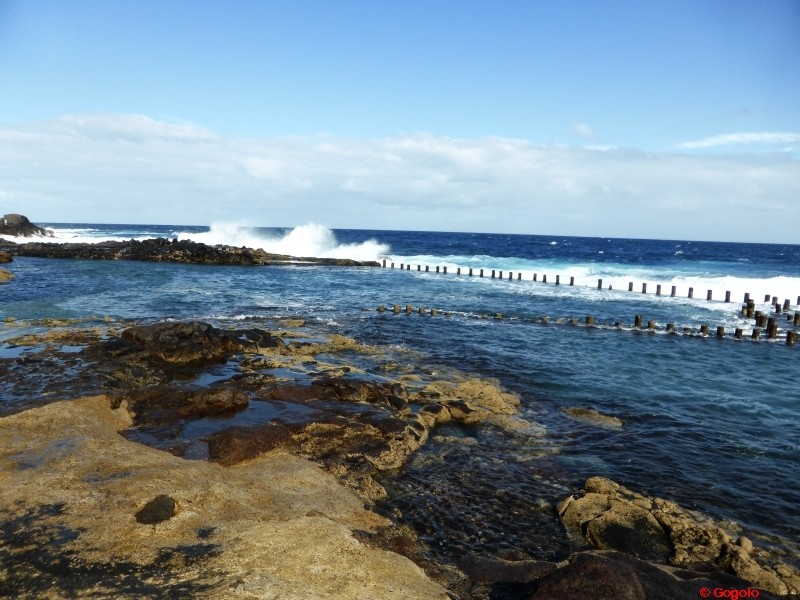 Danke, das ist ja sehr lieb von Dir. Aber wir haben alles was wir brauchen. Habe die Ehre Gogolo Die kanarischen Inseln sind nichts für „Schnellreisende“, auch wenn es sehr viel schönes zu sehen und zu fotografieren gibt. Denn die Inseln sind relativ klein und wenn auch – wie bei uns – die Fahrstrecken fast nie über 100km liegen (meistens so 40-50 km, manchmal auch nur 15 km), so hat man bald fast alles von den Inseln gesehen. Aus diesem Grunde haben wir bis nach Neujahr mit dem Reisen pausiert und „Urlaub“ vom Reisen auf einem Campingplatz auf Teneriffa gemacht. Das urlauben auf dem Campingplatz war aber überhaupt nicht langweilig, denn es waren auf diesem Platz auch unsere Reisefreunde Bruni und Norbert – gleich in der Nachbarparzelle und da gab es sehr vieles von den beiderseitigen aufregenden Reisen zu erzählen und gemeinsame Erlebnisse von der Asientour 2011 aufzufrischen. Auch ist hier im Süden von Teneriffa mit der 85cm-SAT-Schüssel sehr guter Fernsehempfang möglich und morgens hören wir immer Antenne Bayern im Radio. Man muss wegen des starken Windes aber die SAT-Schüssel mit dem Dreibein sehr gut befestigen damit der Winkel zum Satelliten nicht verstellt wird. WiFi gibt es kostenlos auf dem Campingplatz. Während die meisten Leute mit ihrem Laptop zur Rezeption bzw. dem dort angeschlossenen Cafe laufen um Internetempfang zu haben, kann ich mit meiner „Schnüffelantenne“ vom Gogolobil aus einen recht guten, stabilen und schnellen Internetzugang bekommen. Auch eine Waschmaschine gibt es auf dem Campingplatz und das Gogolobil muss auch innen von Gogoline gründlich gereinigt werden. Das Putzen der Solarpanele ist dagegen meine Aufgabe. Das badewarme Meer war für einen oder mehrere Strandbesuche nicht weit weg (Tor vom CP auf und 200m Fußweg über den dunklen Sandstrand) und auch nach El Medano, dem nächstgelegenen größeren Ort, war es fußläufig nur eine halbe Stunde. El Medano ist ein Zentrum der Kitesurfer, da dort in der Bucht meistens ein geeigneter Wind bläst. ![]() Und da war auch noch Marion, die nette, sympathische und immer gut aufgelegte Österreicherin in ihrem Wohnmobil mit zwei Hunden (die täglich bei uns für ein LecGast vorbeischauten), deren Eltern hier auf Teneriffa ebenfalls den Winter verbringen. Bei denen waren wir zwischen Weihnachten und Neujahr zum Essen eingeladen – Hühnchen auf kanarische Art mit österreichischen Semmelknödel…saugut! ![]() ![]() Sie haben uns auch einen genialen Wohnmobilstellplatz gezeigt. Ganz einsam auf einer vom Meer umtosten Felsklippe. Das Wasser rauscht nur so heran und macht einen Höllenspektakel. Allerdings ist der Platz für Weissware-Womos nur absolut bedingt geeignet, denn die Anfahrt dazu ist durch die Unwetter der letzten Zeit sehr stark in Mitleidenschaft gezogen worden, so dass für eine schadlose Zufahrt Allradantrieb und hohe Bodenfreiheit vonnöten sind. Wir werden nach unserer CP-Zeit unbedingt dort hin fahren und mindestens eine Nacht auf dieser Klippe verbringen. ![]() Das Weihnachtsfest und die Feiertage waren warm und sonnig. Etwas weihnachtlich war es im Gogolobil nur mit ein klein wenig Weihnachtsschmuck und Kerzen. Andere Womos hingegen waren auch außen mit blinkenden Lichtergirlanden geschmückt. Wenigstens gab es – wie beim vorigen Weihnachten in Südspanien – keine öffentlichen Feierlichkeiten mit unweihnachtlichen Liedern. Es war friedlich, still und besinnlich – wie ich mir Weihnachten so vorstelle… Sylvester verbrachten wir ruhig und gemütlich mit Bruni und Norbert in deren Fahrzeug und waren froh darüber, dass hier auf dem CP keine Sylvesterknallerei stattgefunden hat. Bruni hat den Tisch recht stilvoll mit Teelichter gedeckt und neben kleinen Knabbereien tischte ich nach Mitternacht eine selbstgemachte Minestrone auf. ![]() Einen Neujahrsspaziergang gab es wieder nach El Medano, denn das Wetter ist schon seit Weihnachten sehr stabil mit viel Sonne, aber auch viel Wind und angenehmen Temperaturen von über 20° C tagsüber und 16-18° C nachts. Die entspannte Zeit auf dem CP ist wieder vorbei, die Reise geht weiter. Wir werden die Insel Teneriffa noch etwas genauer unter die Räder nehmen, insbesondere die Nordküste. Zunächst kauften wir noch bei Lidl und beim Supermarkt Mercadona ein um die Vorräte wieder aufzufüllen. Dann fuhren wir nach El Puertito und stehen westlich davon auf einem Plateau oberhalb des Atlantiks (das ist der Platz, den uns Marion empfohlen hatte – siehe oben) – gottseidank - nur für Allradfahrzeuge anfahrbar, sonst wären alle Womos da… ![]() Es gibt gigantische Wellen und eine tolle Brandung tost an die Felsen und im Westen taucht die Sonne neben der Insel La Gomera ins Meer. Nachts ist nur die Brandung zu hören, aber morgens sind schon die ersten Wanderer und Spaziergänger unterwegs. Nur ein paar Kilometer sind es bis Alcala, unserem nächsten Übernachtungspunkt. Und wieder stehen wir gleich in der Nähe des Meeres an einer Stichstraße, die zwar für Wohnmobile und Caravans gesperrt ist (das Schild haben wir erst viel später gesehen), aber die vorbeifahrende Polizei hat uns gesehen und geduldet. Ein Spaziergang auf der wunderschön angelegten Uferpromenade war Pflicht und außerdem mussten wir uns an einem Geldautomaten in der Stadt Nachschub besorgen. Nachts hat es zu regnen begonnen und wir mussten unseren geplanten Besuch von Masca, einem herrlichen alten Bergort im Tenogebirge, leider auf einen späteren Besuch verschieben, denn die Straßen sollen wirklich!!! sehr eng sein – aber wenn man keine Aussicht hat, und die soll von Masca aus grandios sein, dann lohnt sich die Kurverei nicht. Wir fahren also weiter in Richtung Puerto de la Cruz. Unterwegs sehen wir schon die ersten Mandelbäumchen blühen und in Icod de los Vinos besuchten wir – immer noch bei Regen - den Drago Milenario, den ältesten Drachenbaum der Kanaren. In einem kleinen Laden kauften wir Bananenmarmelade, Feigenbrot und Ziegenkäse. ![]()