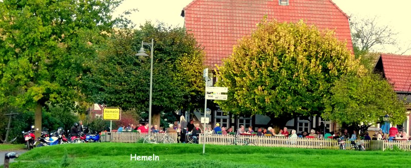 Eine Weserbrücke ist für Womo`s gesperrt und daher fahre ich nach Hemeln. Die Gaststätte direkt an der Weser ist bei Bikern im Sommer sehr beliebt.