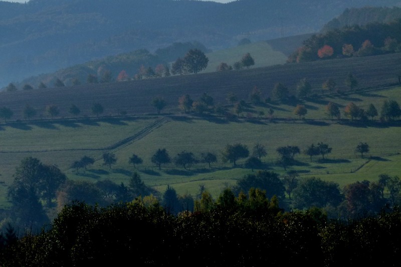 Jetzt habe ich mich entgültig verfahren, aber schön ist es hier. Eine ausgibige Mittagspause auf einem Berg, die Sonne genießen (es sind inzwischen fast 24 Grad und das Ende Oktober). Einfach nur schön hier :!: Hin und wieder kommt mal ein Wanderer vorbei. Übrigens, hier grüßt man sich noch, obrwohl man sich nicht kennt.