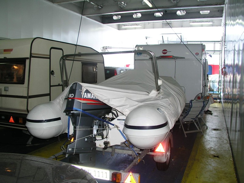 Ich glaub, das ist §18 STVO, aber schlag mich nicht. Das grüne Kennzeichen gibt es für Hänger, die Sportzwecken dienen. Bei Booten kann da schon zwischen Vergnügen und Sport unterschieden werden. Das hängt irgendwie mit der Zulassungsnummer zusammen. Streng genommen darfst du nur das auf dem Hänger mitnehmen, was zum Betrieb des Bootes gebraucht wird. Ganz böse wird die Rennleitung mit dem Mißbrauch von begrünten Pferdehängern, wo dann Quad, Motorrad, Umzugsgut oder gar Stückgut transportiert wird. Der Sinn der Gesetzmacher für die grüne Nummer ist in dem Falle die Förderung des organisierten Sports. Ich habe es so gehalten, das alles was mittelbar zu Bootssport gehört im Boot transportiert wurde. Luftmatrazen, Badehandtücher, Stühle, Tisch, Kühlbox,Tasche mit Klamotten, u.s.w.. Bei längerem Nachdenken gehört schon einiges zum Bootfahren dazu :D aus Bremen Peter Hallo! das sind ja schon etliche Erfahrungsberichte. Schön, so hab ich mir das eigentlich auch vorgestellt: Wenn Platz ist und die Slippe nicht zu steil, slippt man mit WoMo selbst. Sonst umschalten auf ein freundliches Gesicht und Hilfe suchen :D . Sollte klappen. Der Tipp mit den LKW-Begrenzungsleuchten könnte sehr hilfreich sein. Müssen die elektrifiziert werden, wenn man sie montiert? An MobilIveco (oder andere Interessierte): Auf Grund des RIB-Kaufs haben wir ein zusammenlegbares Schlauchboot mit Holzboden (4,20 m) und 20 PS Honda-Motor mit E-Starter und Schaltung, alles Baujahr 2011 abzugeben. Wenig gefahren. Zuzüglich eines Alu-Slipwagens, ebenfalls einfachst zerlegbar. Bei Interesse bitte eine KN schicken. OT an: Nun noch etwas zu dem beliebten Thema "So klein ist die Welt!" Der Doppelstock-Anhänger, der hier in der Beitragsreihe weiter oben zu sehen ist, geisterte schon im letzten Jahr durch das I-Netz, sah ja soweit ganz nobel aus. Als wir vor ein paar Wochen noch auf der Suche nach einem gebrauchten RIB waren, wurden wir während eines Besichtigungstermins in eine Scheune geführt und standen plötzlich vor genau diesem Anhänger. Der Porsche und das WoMo (vom Bild) waren nicht mehr da (hatte der Vorbesitzer behalten), nur noch das Schlauchboot auf diesem Eigenbau-Monsteranhänger. Allerdings war der Zustand des Bootes recht bedauernswert :cry:. Der aktuelle Verkäufer hatte Bilder vom Vorbesitzer in seine Verkaufsanzeige gestellt, aufgenommen kurz nach dem Neukauf des Bootes aus dem Jahre 2010... Wir fühlten uns etwas verschaukelt - 660 vergeblich gefahrene Kilometer :evil: . OT aus VG Eugen Wir sind im Sommerurlaub mit unserer Stingray (18 Fuß Bowrider, 140 PS Innenbordmotor) unterwegs. Boot inkl. Trailer und Urlaubsgedöns 1.500 kg , WoMo im Urlaubstrimm ca. 3950 kg inkl. Stützlast. Geht sehr gut. Slippen würde ich allerdings damit nicht - da gönn ich mir ein Kran.