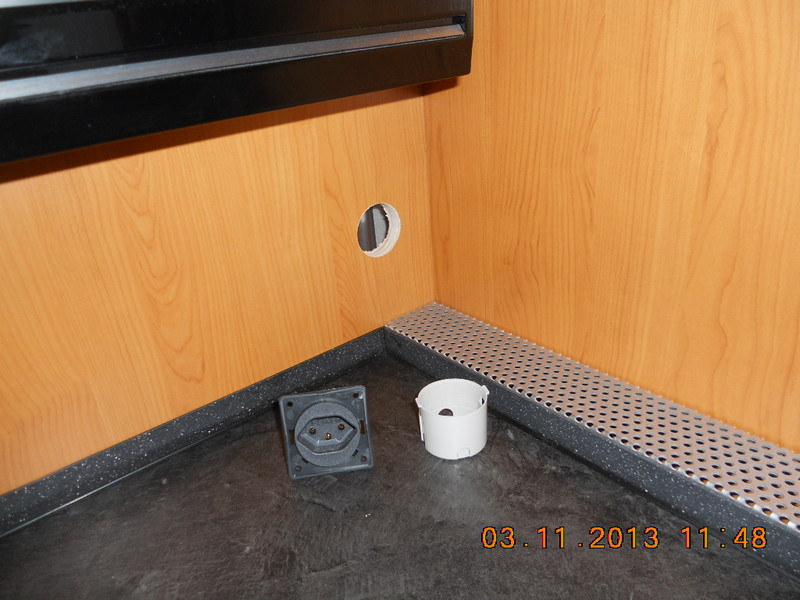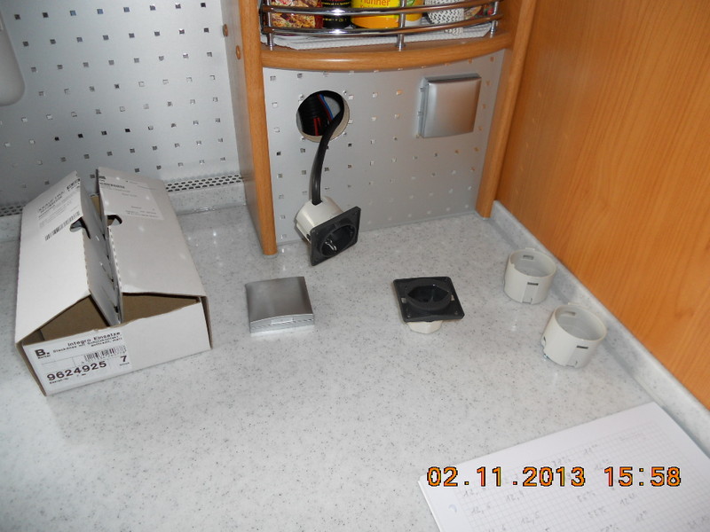 eben nicht. Ich habe nur eine 220V und die sitzt in einem kleinen Kasten. Dazu müsste ich erst das Brett im Hängeschrank zu diesem Kasten abschrauben. Glaube kaum das dann dahinter noch ne Abdeckung auf der Steckdose sitz. Aber diese Isolierdosen sehen alle etwas "grobschlächtig", kantig und dünnwandig aus. Gibts die auch in einer höherwertigen, dickwandigernen und glatten Version von einem Hersteller, denn schließlich wären die dann in einem frei zugänglichen Hängeschrank in den man ja auch reingreifen würde. Hallo, ich stell Dir hier mal ein paar Bilder ein damit du siehst wie es in der Praxis ausschaut, da wir die Schukosteckdosen gegen Schweizer Steckdosen gewechselt haben :ja: . Die Kunststoffdose hat zwei Löcher seitlich wo die Steckdose einschnappt - da kann nichts passieren, auch wenn du die mitten im Kästchen montierst :wink: . Originalverbaute Teile vom Hersteller wo die Schukosteckdose noch dran hängt ![]() Zusatzdose von uns gebohrt und verbaut, hier siehst du gut das die Dose vorne zwei kleine Laschen hat die am Holz halten und solltest du trotzdem noch kein gutes Gefühl haben kannst du ja zwei kleine Schrauben nehmen und durch die Dose ins Holz schrauben :ja: ![]() ![]() ![]() und fertig ist die Steckdose :D ![]() Hoffe das hilft dir bei Deiner Entscheidung, normale Steckdosen wo man im Haushalt hat sind einfach zu gross und die Dosen hintendran natürlich auch. Hallo Ostwestfale! Wollte die auf die PN antworten aber du hast anscheinend den Empfang von Nachrichten ausgeschaltet. Vielleicht kennt man sich ja! :razz: