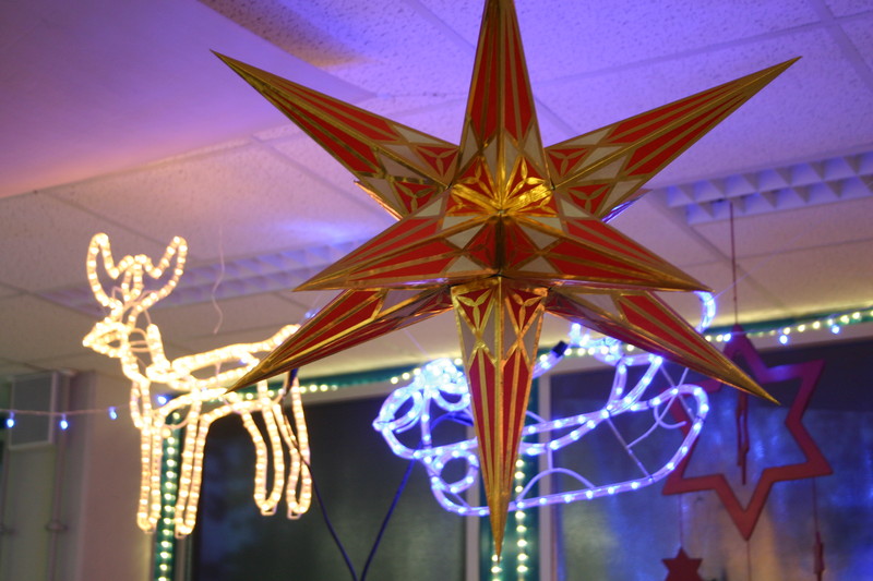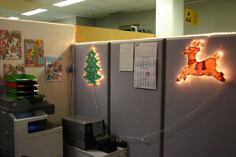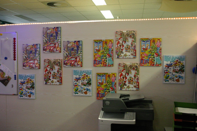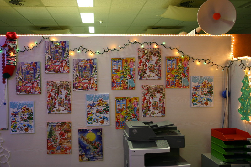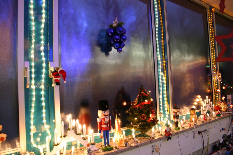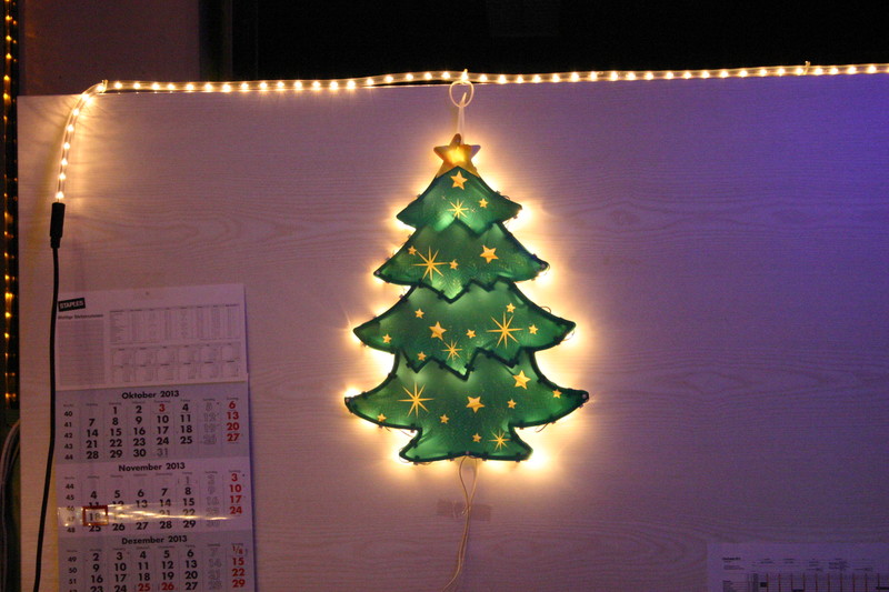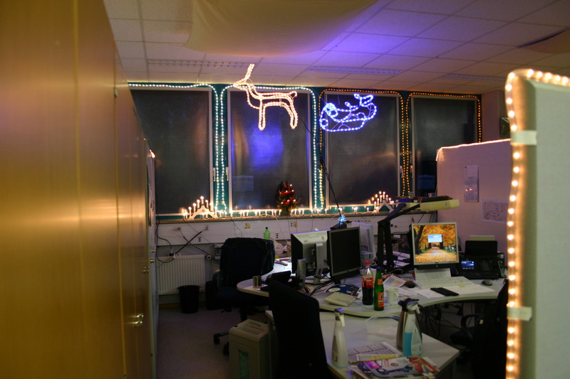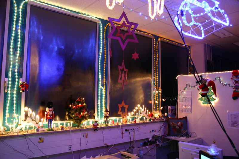 Seit Anfang November bin ich hier auf der Arbeit am dekorieren. Da ab Mitte Dezember kaum noch einer hier ist, wurde rechtzeitig angefangen.