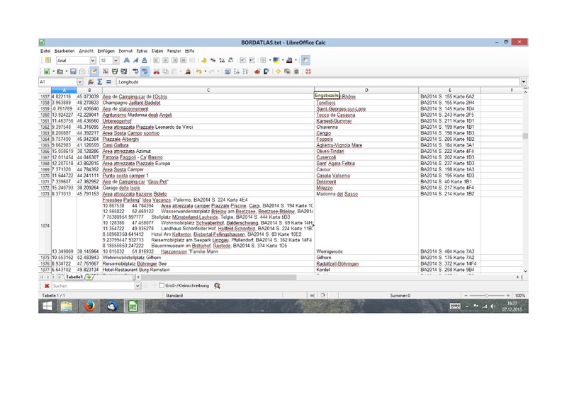 Vllt hilft dir dieser Link weiter--> --> Link Super und danke dir Richard LG Frank Hallo, die div. Stellplatzdateien von Bordatlas haben teilweise unterschiedliche Anzahl der Stellplätze. Beim Editieren der Dateien habe ich festgestellt, dass z.B. bei POIWarner 9.420 Datensätze vorhanden sind (viele Sätze doppelt) in der .txt Datei sind 5878 vorhanden (z. T. falsch gefüllte Zellen - siehe Tabelle) bei Navigon sind es 6010 Datensätze, diese Anzahl scheint realistisch zu sein. Um diese Datei nutzen zu können, habe ich aus der Beschreibungsspalte nur den Hinweis auf die Buchseite übernommen. Mit dieser "Manipulation" habe ich die Daten auf mein Navigon 8450 per NavigonFresh installieren können. Um die Datensätze kontrollieren zu können, muss ich mir jetzt bald den Bordatlas kaufen. Siggi ![]()