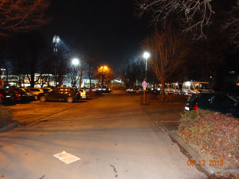 Als wir abends zum Stellplatz zurück kommen ist ein Aufgebot von Polizei am Platz der helle Wahnsinn und das alles wegen einem Fussballspiel, drum war auch der hintere Teil des Stellplatzes gesperrt als wir angekommen sind :? .