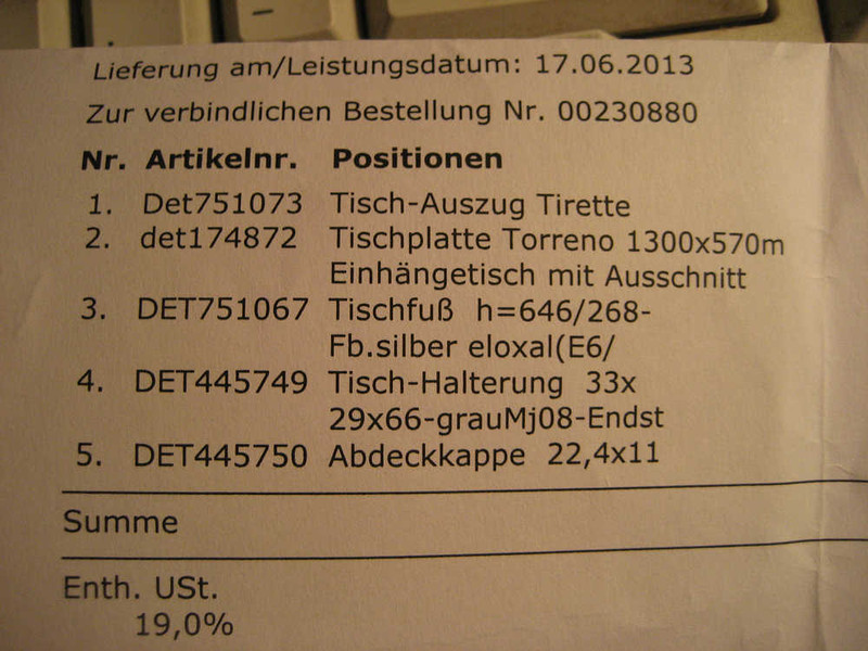 Guten Tag Frage hast Du vielleicht eine Teilenr von deinem Tisch .mit fr.grüssen turi47 Hallo Turi47, ich habe dir eine Mail geschrieben. Therrytom |