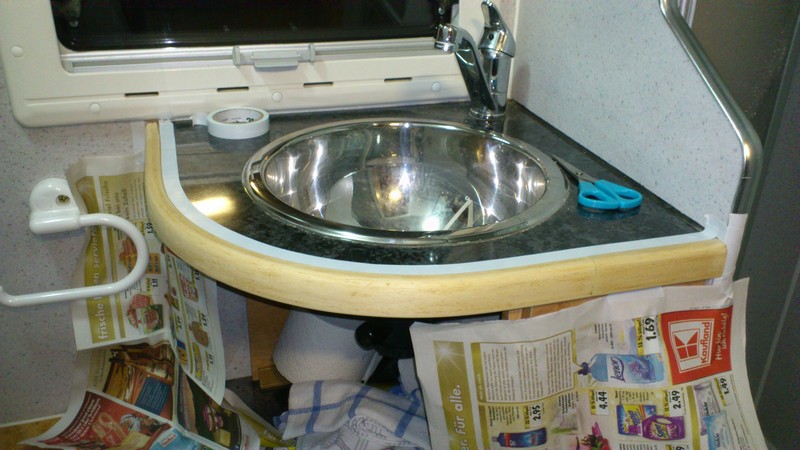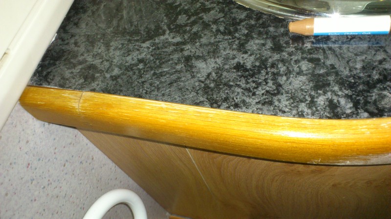 Das Wasser hat den Lack der Kantenleisten arg beschädigt: