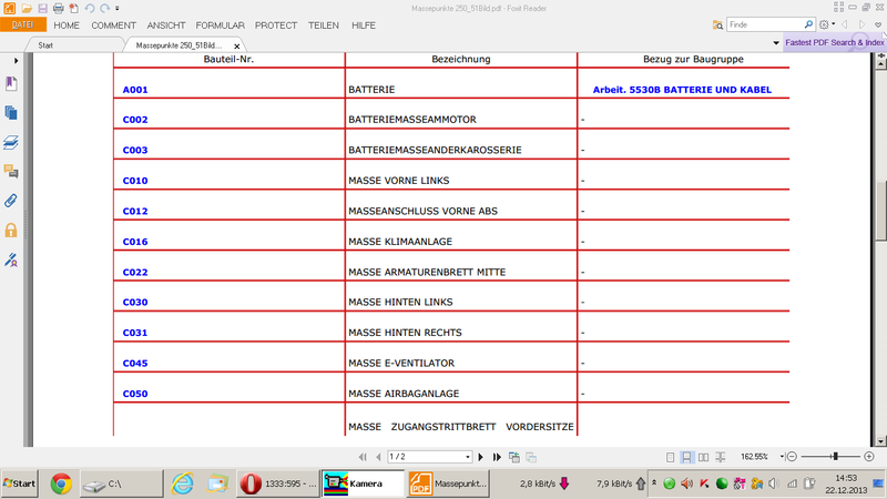 Hi nö, ich denke nur, bevor ich einen Werkstatttermin hole (jetzt zwischen den Jahre?), dann 25km hin gondele, dann wieder zurück - da ist ein halber Tag hin. Und dann vielleicht nur weil das Massekabel an der batterie lose war :oops: . Da komm ich mir als Ingenieur blöd vor, außerdem ist mir die Zeit zu schade. :wink: Wenn ich es nicht finde kann ich den Händler ja immer noch in Anspruch nehmen. Selbst ist der Mann, wenn er den einer ist :lach: Hallo kintzi danke, das ist mal hilfreich, dann werde ich deiner Zeichnung Positionsweise abarbeiten. SUPER Hilfestellung. :top: :top: :top: Wenn sonst alles funktioniert, sind für Dich die Kontrollstellen Massenpkte. C010 u. C022. Wenn`s die Masse nicht ist, wird`s mit dem Bus-System kompliziert. Gehe dann lieber z. Profi, bevor Du Schaden anrichtest. Gr. Richi