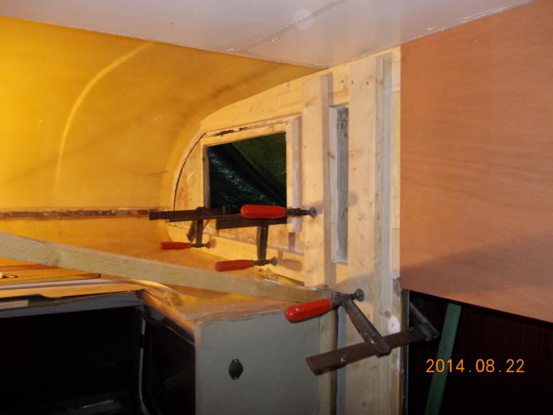 Hallo Emil, das Foto habe ich von dieser aktuellen Anzeige: Link zum eBay Artikel Wahnsinn :!: :!: .. ich hoffe es fndet sich ein kleines ehrliches Museum, welches dieses Womo für sie Nachwelt bewahrt :!: So schön wird meins sicher nimmer :( Emil Hallo erstmal, das mit den Haltern für die Leiter hat wohl damit zu tun, dass die Kräfte bei dem Originalen gegen die Wand drücken. Anders herum würden die Kräfte an der Wand "ziehen"! So würde ich das sehen! Hi Michael, nun ja .. ich sehe es etwas anders. Die Halter sind ja nicht in die Wand reingespießt, nach unten oder eben nach oben, sondern mit wagerecht in die Wand geschraubteb Schrauben angeschraubt. Die Last wirkt an der Wand senkrecht nach unten, wobei drücken oder ziehen ziemlich vernachlässigt werden kann :wink: Ansonsten .. es war vieeeel zu heiß zum heftigen Arbeiten :cry: Ein bischen Gartenarbeit gabs trotzdem :D ![]() Der eingetroffene Markisenstoff ist nun montiert .. Markise abgebaut .. versteht sich 8) ![]() Das ging relativ problemlos :wink: Emil Eine Woche Forenbeiträge wech .. oh oh :( Hallo Kai, mach ich doch ganz genauso, bei der Wanderneuerung nehm ich mal gleich die ein, zwei, angrenzenden Wasserschäden mit :D :D :D ![]() Nun wüßt ich doch zu gerne, was die Wasserflecken dort erzeugt hat .. die kommen wohl von unten? 8) ![]() Der Ernst der Lage hat mich dazu bewogen eine Sonderschicht einzuschieben, heißt ein Tag Urlaub eurde investiert :) Nun aber ran ans Werk, Altholz im Dachbereich rechts vorne raus .. in Abänderung des Plans doch gleich bis ganz nach vorne .. ![]() eididei .. ich dachte bei Gattblechalu gibts kein Alufraß, doch, den gibts :eek: .. ist jedoch in diesem Fall eher ungefährlich .. ![]() .. eine neues Holz für oben und eins direkt vor Klappe und Fenster stehend, gefertigt, vorbereitet war das Holz ja bereits, also verleimt und gehobelt .. ![]() Dieses Mal ist der Absatz über dem anzuklebenden Blech bereits hergestellt .. leider fiel mir keine Lösung ein, dass irgendwie maschinell hinzubekommen, also mußte es händisch gehen :) jo und zum Tagesabschluß war das ganze eingeklebt. (hier in Vorbereitung) ![]() Den heutigen Vormittag hats mit Nacharbeiten, Verschrauben an der Decke, Fahrersitz und Sitzuntergestell raus, Teppich im Führerhaus raus, irgendwie hinweggerafft :lol: Der Nachmittag wird hoffentlich noch weiteren Fortschritt bringen :D Soweit .. Emil Hallo Mädels und Jungs .. kleines Update .. Dank eines fleißigen Helfers, sind Rückwand und Dach wieder am alten Fleck ![]() Trotz ein paar kleiner neu entdeckter, bzw, bewerteter Schäden .. ![]() ![]() .. was soll einen noch erschrecken :D Es geht voran .. gerade nochmal was von Neu in Alt .. ![]() .. inzwischen ists sogar schon etwas weiter gediehen :) Ein gewisser "Schiefstand" ist momentan durch eine Diagonalaussteifung korrigiert :lol: Immerhin, die "Rüstung" ist raus aus dem Mobil :) ![]() Weiter gehts am nächsten WE :ja: Dank und Emil Hallo Emil, sieht gut aus nur noch tapezieren... :) :) Spass bei Seite es geht vorran !! Ein Tip von mir: Setze Rechts/Links an die "kleine" Wand hinter den Sitzen einen Kabelkanal dann hast du die Möglichkeit "vergessene" oder zusätzliche Kabel zu jeder Zeit in die Oberschränke oder auf´s Dach zu verlegen. Ich mußte den recht umständlichen Weg durch die Holme der Fahrerkabine wählen. Weiterhin viel Spaß Kai Hallo Emil, Es geht voran, ich bewundere Deine Moral und Ausdauer. Das muss ja schon unzählige Stunden gekostet haben. Michael Hi Michael, Thx. Ich habe aufgehört die Stunden zu zählen :D Hi Kai, kabelkanal vorn links geht nicht, da sitzt der Gasflaschenbehälter, daneben der Wassertank. Rechts machts wenig Sinn :ja: Du brauchst aber keine Sorge zu haben. Die Pläne sind Kopffertig vorhanden, der Rest wird sich beim Einbau finden :wink: Emil Kopffertige Pläne find ich echt Klasse, es geht doch nichts über die Haltbarkeit eines guten Professoriums :D Leg besser ein, zwei Kabel mehr früher oder später brauchst du die bestimmt. Hi Stefan, es geht doch nichts über die Haltbarkeit eines guten Professoriums :D ähm ja, kann ich grad irgendwie garnich werten :?: Hoffe Ihr hattet nen netten und Womo-Probfreien Italienurlaub. Auch wenn ich mir en bischen mehr Engagement betr. meines Wunsches erhofft hatte :? Jutt aber, zum Thema .. Wer hat an der Uhr gedreht .. Extrarunde, wie am letzten WE auch .. heisst, einen Tag Urlaub, heute, ins Projekt investiert .. aja, wenn ich so gen Himmel schau, .. es wird Herbst, Eile ist geboten, risikoloses Kleistern geht nur bis plus 10^C :) Nette Nachbarn erinnern mich inzwischen an die Mittagszeit, 13.00Uhr .. haja, so gutt wie die vielen elektrischen Helferlein sind, die Sache macht nen Höllenlärm :eek: Watt hilfts, watt mutt datt mutt 8) ob links .. ![]() .. ob rechts .. es nutzt rein gaarnix, die Hölzer müssen regelrecht zerstückelt werden, um eine saubere Wandfläche hinzubekommen :cry: ![]() Nun ja, die größten Dinge sind durch, die noch im Boden rauszuschneidenden Teile sind sicherlich nicht so geräuschvoll zu entfernen. Beginnend rechts, sahs am heutigen Abend gutt aus :lol: ![]() Langsam herrscht Chaos im Hintergrund. Aufräumen ist Derzeit bischen zu kurz gekommen :D Am Ball bleibt Emil :) .. thx at all ganz ruhig Brauner - es ist erst Ende August. :D Gegen den Radau gibt es ein kleines Zaubermittel - auch "Gelbe Stöpsel" genannt. Ich mag die auch nicht aber alle mal besser als der Krach und bei Weitem nicht so unbequem wie Mickey Mäuse. Aber wem erzähle ich das. Das weisst du ja auch alles selber. Du bist ja schon ein grosser Junge. :ja: Was hasste den ausser dem Innenausbau noch vor dir?
