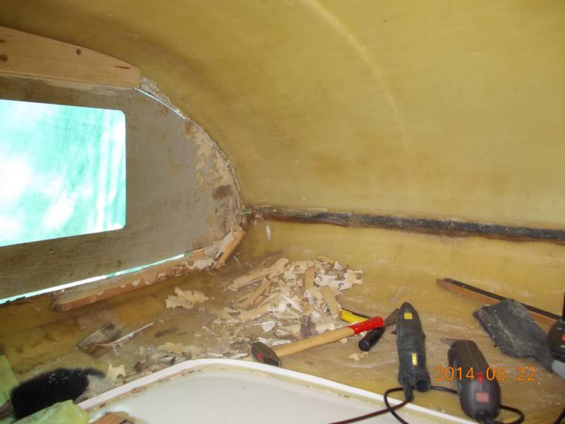 Hi Stefan, Ok, dann verstehe ich Deinen Scherz : :) .. Die nächste Stufe ist dann, dass man vergisst, wo man die Zettel gelassen hat :D aber auch die liegt bereits hinter mir. Inzwischen versuche ich das Zettelsammelsurium zu meistern 8) betr. Alkovenseiten, blättere mal ein paar Seiten zurück und schau Dir die betreffenden Bilder an. Leider hatten die Leuts bei der Instandsetzung in ca. 2007, im Alkovenbereich, in erster Linie die neuen Dekorplatten erneuert, ohne die Schäden dahinter grßflächig instandzusetzen :cry: Hi Tobi, betr. Instandsetzung bzw. Erneuerung der Ineneinbauten, lasse ich die Sache auf mich zukommen. Vom Grundkonzept wird die Innengestaltung wieder hergestellt. Einzenlnes sicherlich verändert, bzw. erneuert :wink: Emil .. der gerade bissel was kleistern geht :ja: Weiter gehts + Frage an Turbokurtla, die Alkovenecken sind innenrohausbautechnisch nun fast fertig :) ![]() örks, da fehlt doch noch was 8) .. haja, schon in Arbeit :lol: ![]() So siehts dann, nochmals trocken anprobiert aus .. ![]() Rechts ist die Ecke bereits eingeklebt ;D Nun meine Frage an Kurt: Inzwischen habe ich mich auch schon etwas an die gammeligen Bodenecken heran gemacht. So siehts aus ![]() Bischen näher rangeholt, das kleine Loch stammt von mir, da hatte ich mal bischen mit Bravoer von unten den Einstichtest gewonnen :eek: ![]() Mein Plan ist, außen, längs, eine Leiste neben die originale zu setzen. in gewissen Abständen weitere Leisten zur Trittstabilisierung einzusetzen, Styrodur entsprechender Stärke einzukleben, Beckplatte oben drauf geklebt. .. Immer schön mittig auf die originalen Querleisten. Natürlich nicht allzu kleine Fuzzelstückchen, so dass ne passabele Fläche entsteht. Ists so ok, kannst Du Deinen Segen dazu geben :?: :?: :juggle: und Dank an alle, sendet Emil PS. Aso ja, hinten bin ich schon ein Maler :D ![]() Hi Emil, Gefällt mir gut, und mit der hellen Farbe sieht das doch schon fast wohnlich aus. Hast du beim linken Radkasten schon ne Idee? Das Loch auf dem letzten Bild ist doch der fehlende Radlauf? Der auf der rechten Seite, wie ist der gemacht? ist der eingesetzt als Fertigbauteil oder aus Holz gebaut? Hi Stefan, Der andere Radkasten ist nun auch raus. Wirklich fehlen tut mir keiner ser beiden. Denk, die sind so aufgebaut, wie von Dir mal beschrieben. 2 Schichten dünnes Kunststoffmaterial, dzwischen ausgeschäumt. Leider sind die Dinger von unten angetackert und eher recht spröde. Heißt, die sind nicht wirklich unbeschädigt ausbaubar, da man beim hochhebeln der Tackerklammern bereits Brüche produziert. Irgendwo ists aber nicht wirklich schlimm. Ich werde wohl unter die vormals getackerten Ränder Alustreifen druntersetzten, das ganze dann anschrauben + zum Boden hin abdichten. Emil