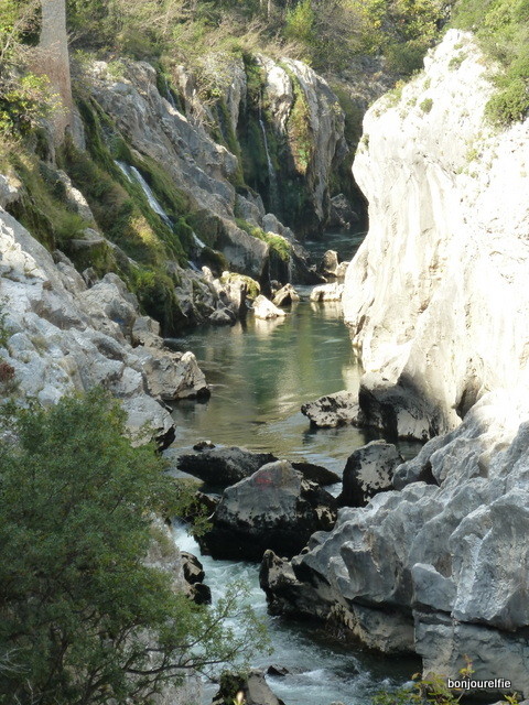 Dies ist im Sommer ein äußerst beliebter Badeplatz, jetzt sind wir fast allein hier. Ab hier hat sich der Fluss Herault tief ins Gestein eingegraben.