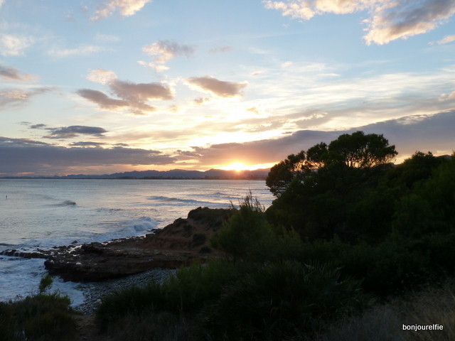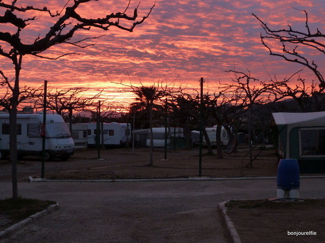 Ausgiebige Internetbefragung: das Wetter wird in absehbarer Zeit nicht besser. Deshalb beschließen wir, jetzt doch noch einen großen Satz nach Süden zu machen, schließlich suchen wir die Sonne! Also auf nach Spanien. Nach knapp sieben Stunden Fahrt auf fast leerer Autobahn haben wir keine Lust mehr und checken in Benicassim auf einem CP ein. Es ist deutlich wärmer und die Sonne scheint wieder, endlich. Am Abend noch ein kleiner Spaziergang zum nahen Meer, und wir werden mit einem schönen Sonnenuntergang belohnt.