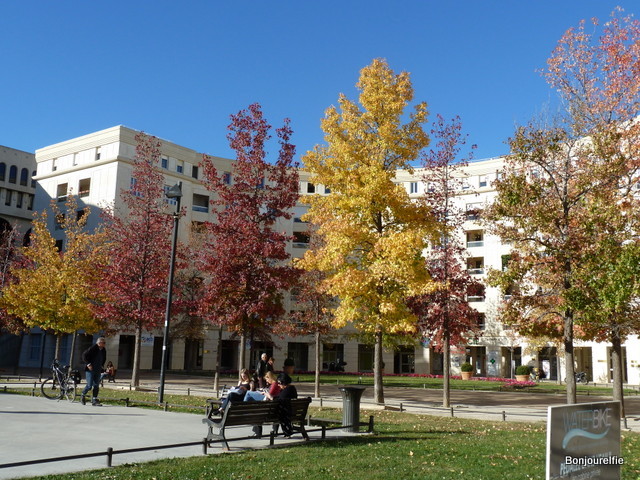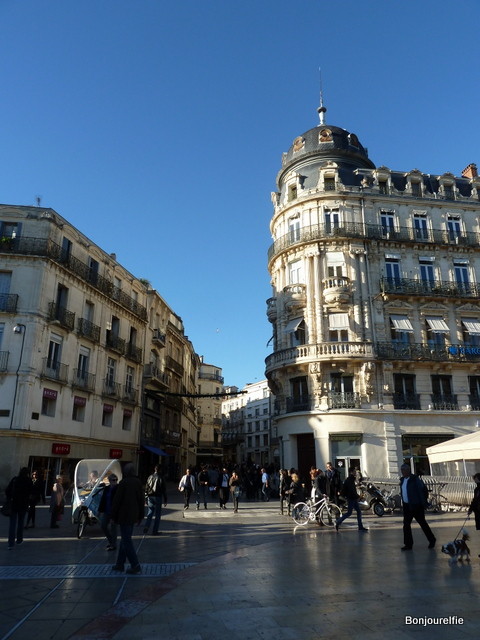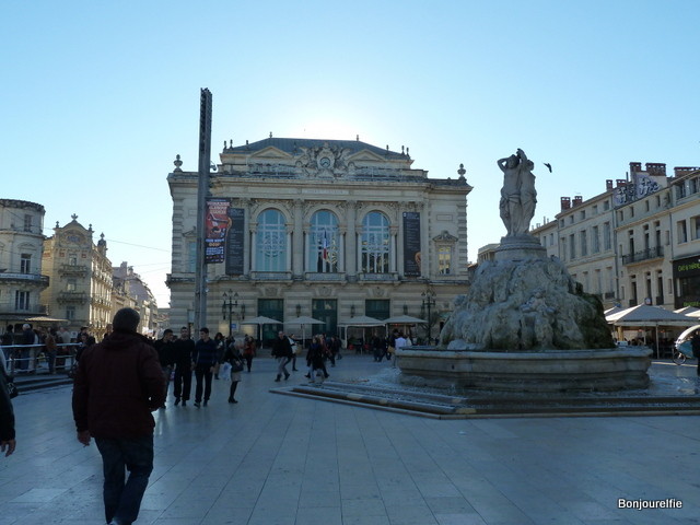Die Hauptachse soll wohl an die Champs-Elysées erinnern, Restaurants und Geschäfte reihen sich aneinander. Bis zum kleinen Fluss Lez zieht sich das Viertel hinunter, gekrönt vom verglasten Triumphbogen des Regionalparlamentes, typisch französisch. Bei der Hinfahrt hatten wir eine Reifenpanne, die uns einige Zeit gekostet hat (aber selbstverständlich hatten wir Flickzeug dabei). So blieb nur noch Zeit für den Place de la Comédie, ein großartiger, weitläufiger Platz, wo man einfach nur im Café sitzen mag und schauen. Die prachtvolle Opéra,