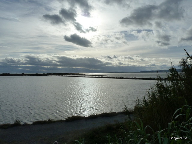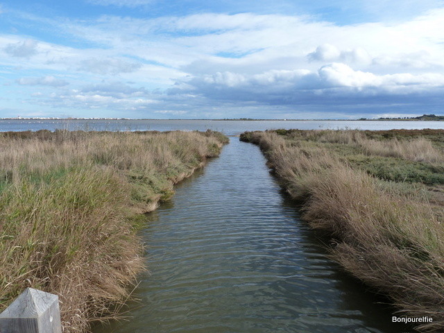 Heute lassen wir es ruhig angehen, morgens einkaufen, ist ja in Frankreich kein Problem. Die Sonne macht sich etwas rar und es ist recht windig. Bis zum Strand sind es etwa 3km, die wir heute zu Fuß gehen. Ein schöner Weg. Zunächst an einem kleinen Kanal entlang,