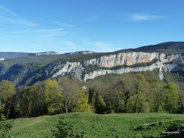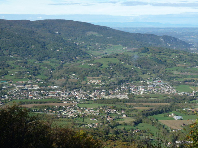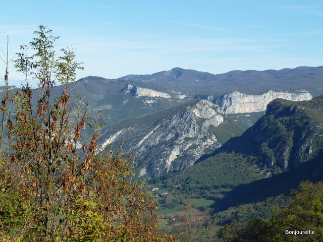 Uns zu Füßen breitet sich sich Landschaft Royans aus. Früher war hier viel Holzwirtschaft, über kleinere Flüsse, die Isère und die Rhone wurde das Holz bis zum Mittelmeer geflößt. Heute dehnen sich hier große Walnussplantagen aus und es gibt vorzügliches Walnussöl.