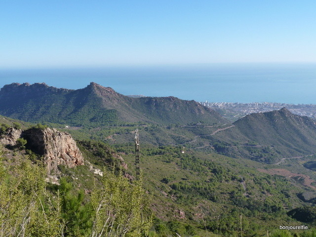 Ich öffne das Fenster, über uns ist strahlend blauer Himmel. Leider stehen wir im Tal und müssen noch auf die Sonne warten, sonst hätten wir wohl draußen frühstücken können. Die Berge locken uns und so fahren wir auf einer abenteuerlich schmalen und steilen Straße bis zu einem Aussichtspunkt 500m über dem Städtchen.