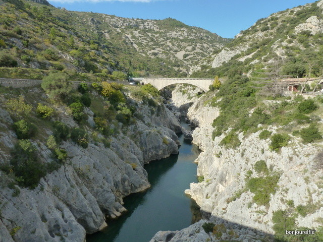 Das Wetter hat umgeschlagen. Bereits gestern hat der Wind stark aufgefrischt und die Sonne war kaum noch zu sehen, Zeit zum Aufbruch. Gestern habe ich von der Gorge de l'Herault gelesen, zufällig, ihr wisst ja, wir sind dieses Mal ohne Reiseführer unterwegs. So lassen wir uns vom Navi erst einmal zur Pont du Diable, der tausendjährigen Teufelsbrücke, leiten.