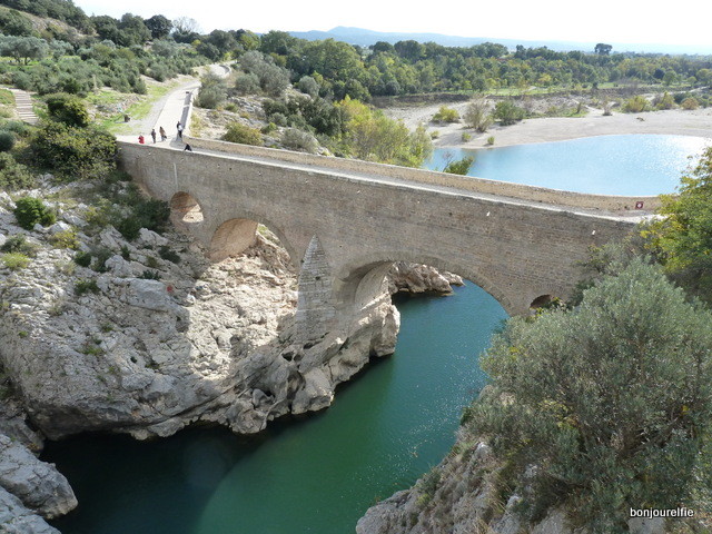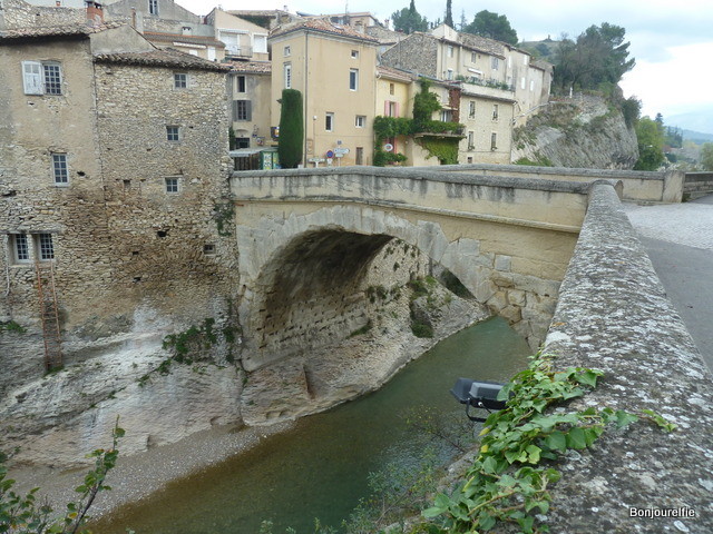 Nach einer leckeren Pizza und einem Mittagsschläfchen im Womo gehen wir noch einmal los, wir wollen noch die römische Brücke über den Fluss Ouvèze anschauen. Diese Brücke hat schon viele Hochwasser ausgehalten, selbst das große in den 90ern, da konnten die neueren Brücken nicht standhalten.