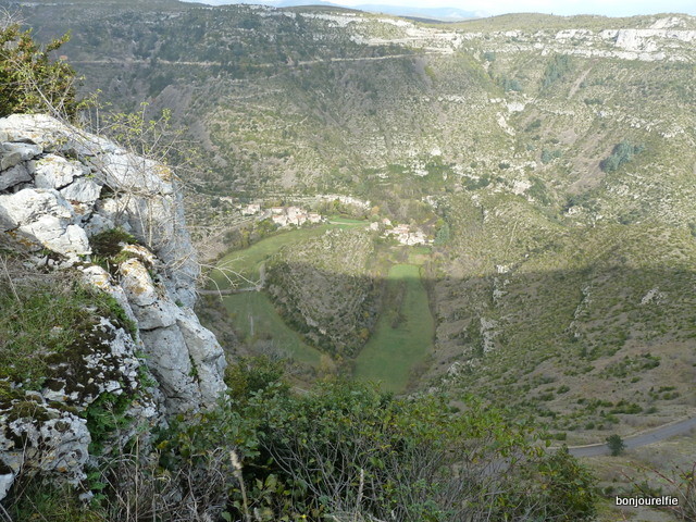 zum nächsten highlight, die Cirque de Navacelles --> Link. Der Fluss hat sich wie mit einem gewaltigen Bohrer in das Karstgestein gefräst. Vom Aussichtspunkt aus sieht man 300m unter sich das kleine Dorf, rundherum von Felswänden umgeben.