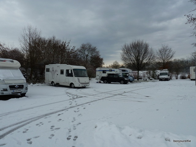 Gestern sind wir noch bis Viviers an der Rhone gefahren, standen ganz allein direkt am Wasser. 331km Und heute haben wir im Französischen Jura den ersten Schnee gesehen.