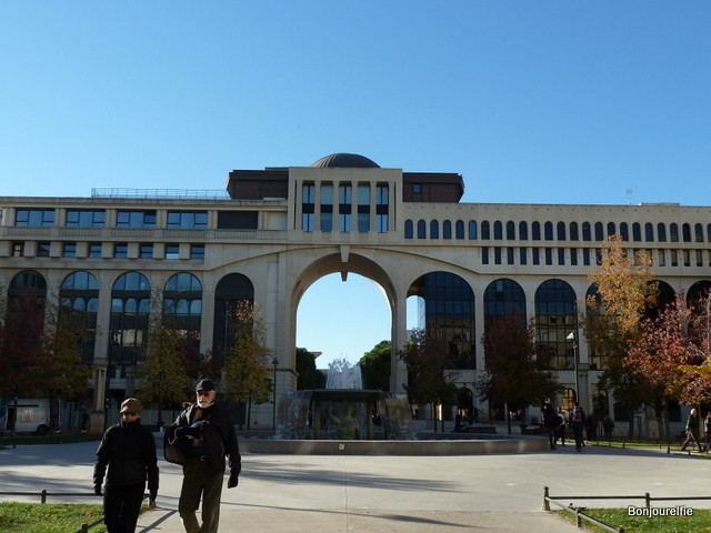Ein weiterer Radausflug führt uns nach Montpellier, die Hauptstadt dìeser Region mit ca 250 000 Einwohnern. Wir waren schon einmal hier, ich mag diese Stadt, sìe wirkt so modern und dynamisch, trotz der wunderschönen Altstadt. Das liegt wohl auch an der Universität mit ihren 60 000 Studenten. In den 80er Jahren wurde ein ganz neuer Stadtteil gebaut, Antigone, eine konsequent symmetrische Anlage mit Säulen, Friesen, Giebeln, die an die Architektur antiker Tempel erinnert.