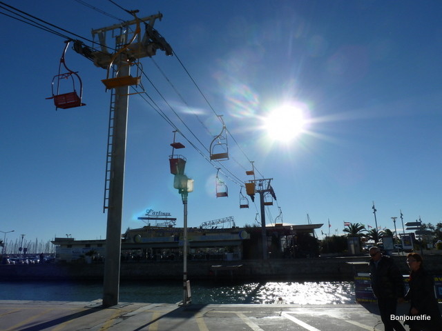 Über eine bewegliche Passerelle (Fussgängerbrücke), die nur bis 17.00 Uhr geöffnet ist